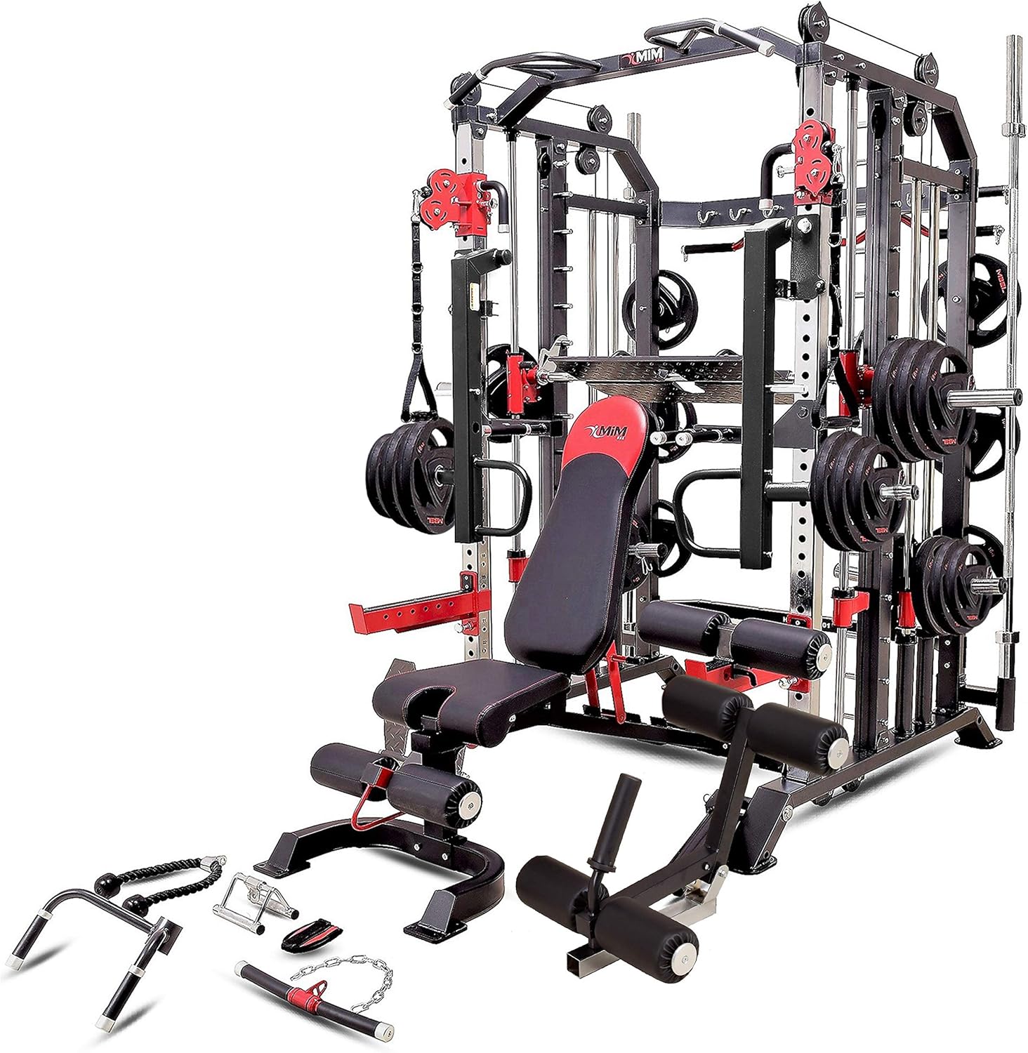 - The Multi-Functional Gym Combo โ Our MiM USA Hercules 1001 smith machine gym equipment includes a Functional Trainer, Power Cage, Vertical Leg Press, Dip & Chin up Station, and Adjustable Weight Bench. A Complete Set of Strength Workout Solutions comes with Solid Weight Rod, Copper Bushing, Cable Length, Hard Chrome Plated Sleeves, Barbell, Lat Bar, Straight, Curl Bar, Standard, and Olympic Bar Storage, Spring Clips, and Rubber Stopper for Smooth Slide.