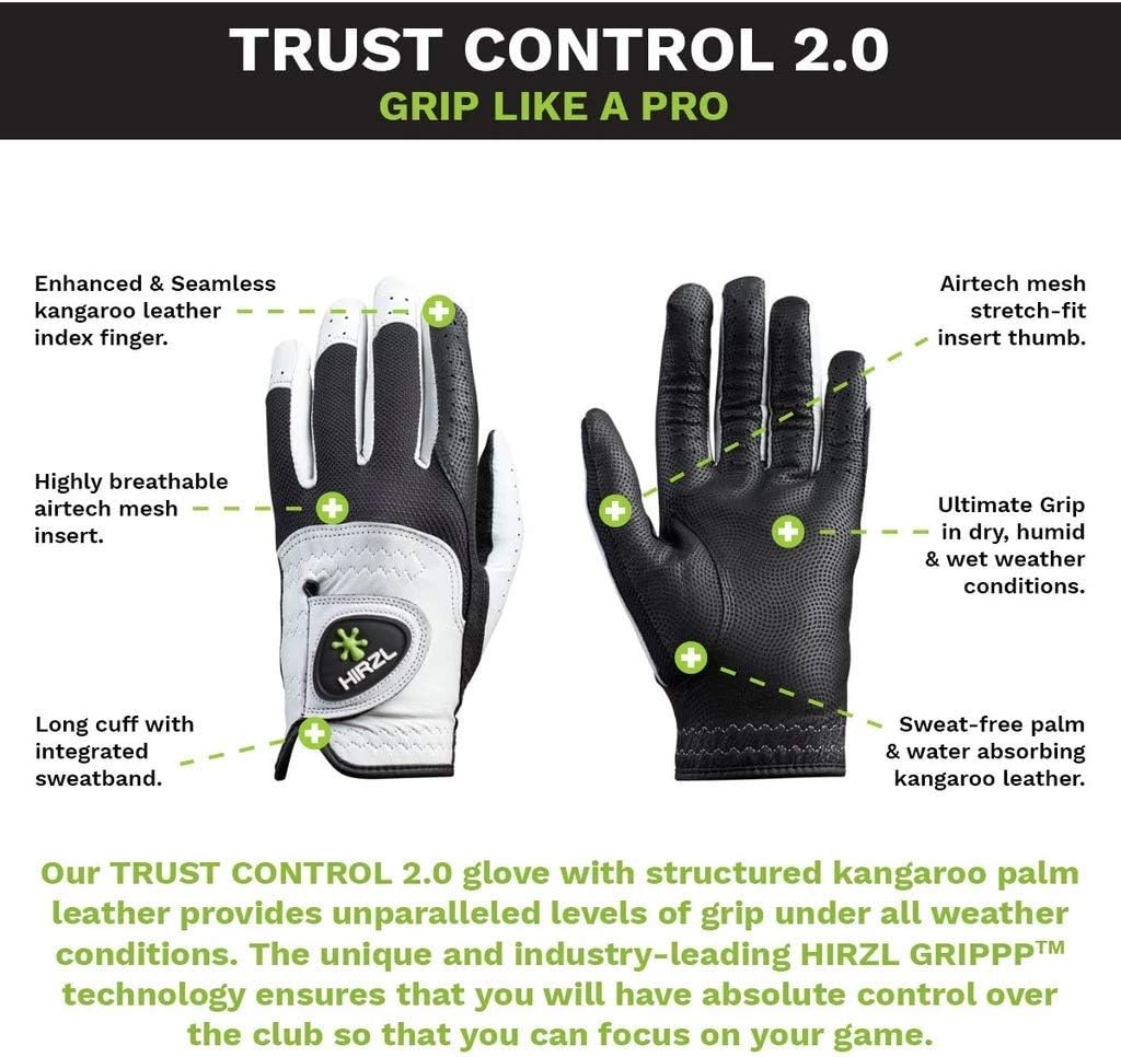 HIRZL Trust Control 2.0 Golf Glove, All Weather Mens Golf Glove, White/Black, Kangaroo Leather Palm, Cabretta Leather Backhand, Trusted by Pro’s, Sweat Free, Ultimate Grip