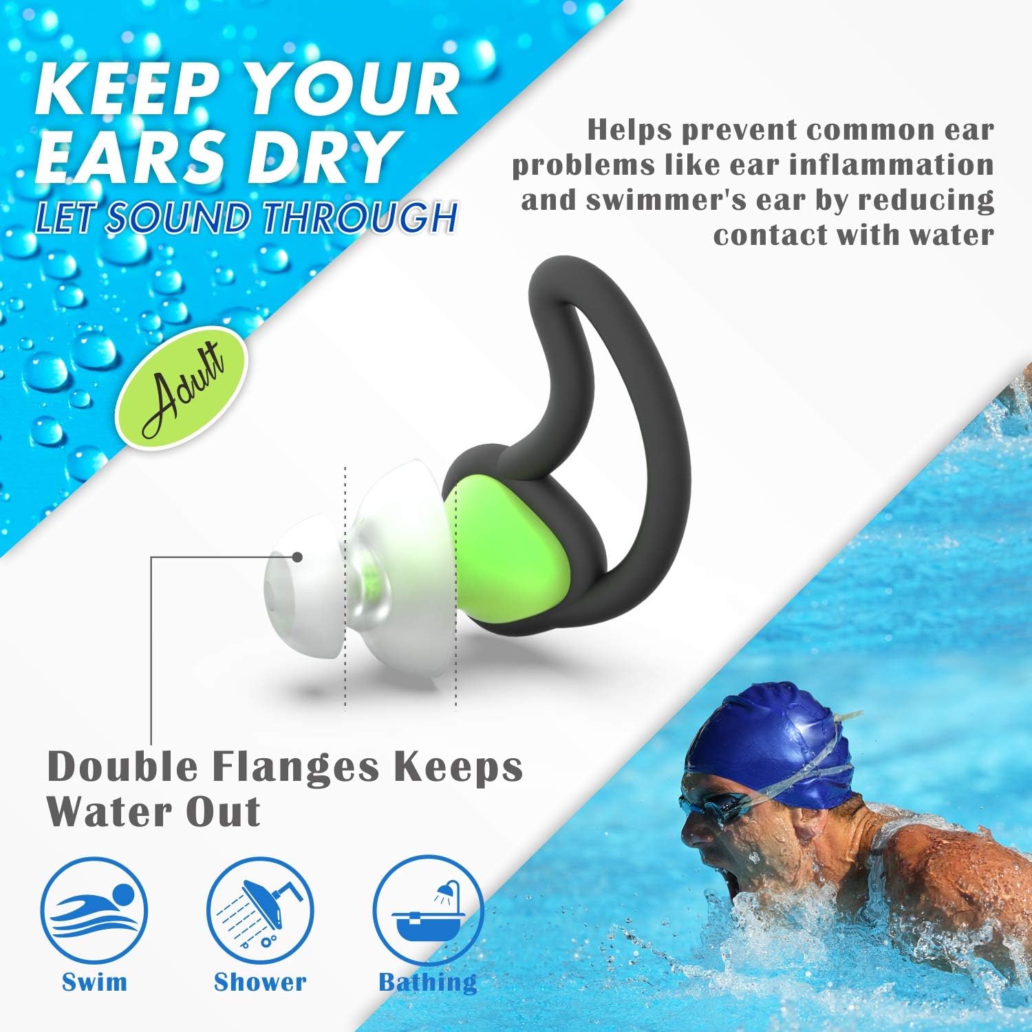 - KEEPS WATER OUT: Featuring a waterproof mesh layer, these earplugs keep water out while allowing sound to enter. Their high-quality design makes them suitable for swimming, showering and bathing. They’re ideal for preventing swimmer's ear over time