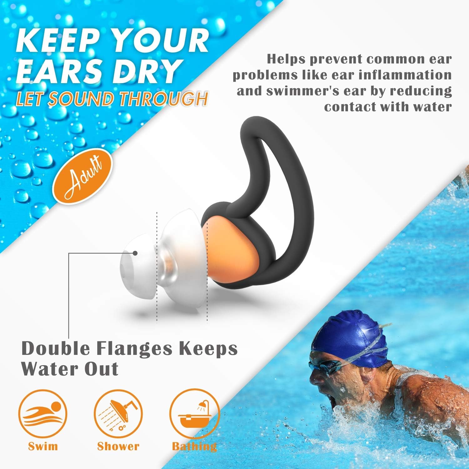 Hearprotek Ear Plugs for Swimming, [2 Pairs] Swim Ear Plugs Adults-Waterproof Silicone Water earplugs for Men Women Juniors Swimmers Pool Shower Bathing (Orange)