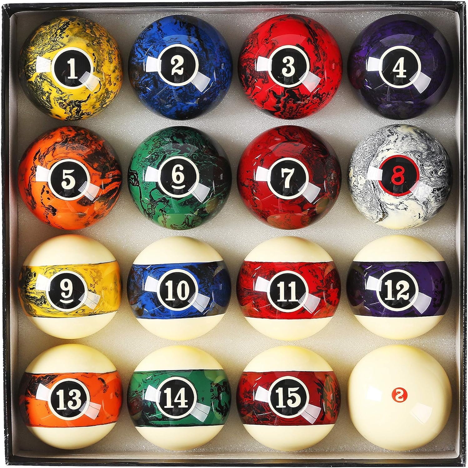 - ★GORGEOUS MARBLING:More gorgeous, Richer Marbling, comparing to other billiard balls brands! Our swirl pattern is A "hey, cool". Revealing the luxury of this high-end pool balls. These pool balls is gorgeous to go beyond your expectation.