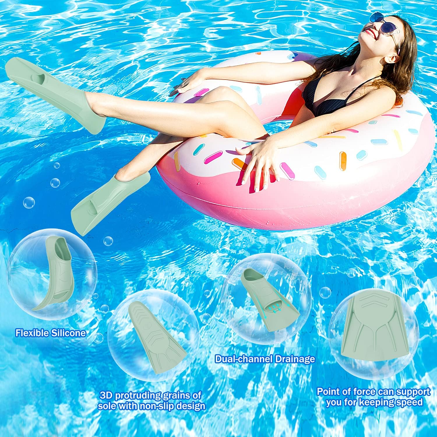• 【How to choose a fit fins】Comfortable is King! A blade that’s too stiff will give you foot and leg cramps in short order, regardless of how perfectly they fit you! Our flippers with flexible material will give you a betterexperience. A snug fit will also reduce chafing and slipping around your ankle. Use fin socks for extra comfort, insulation, or if you’re between sizes.