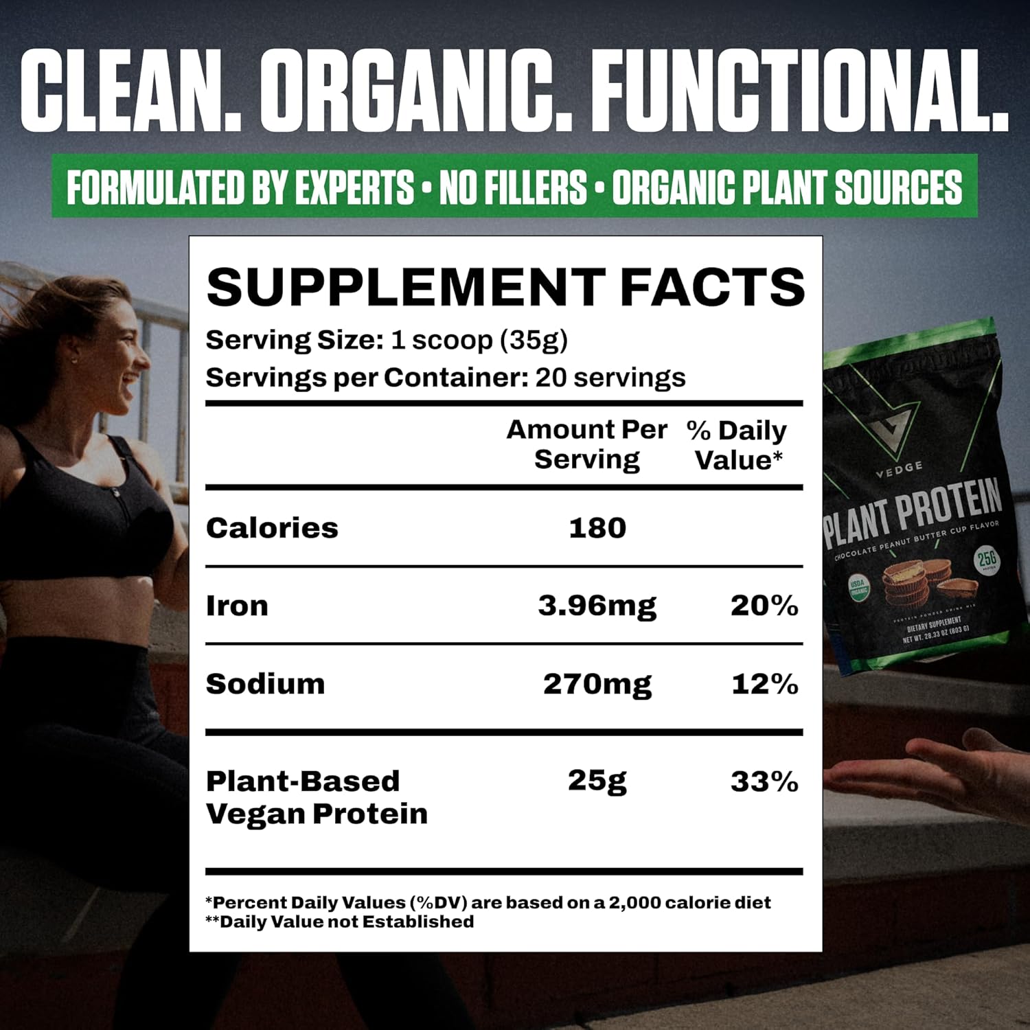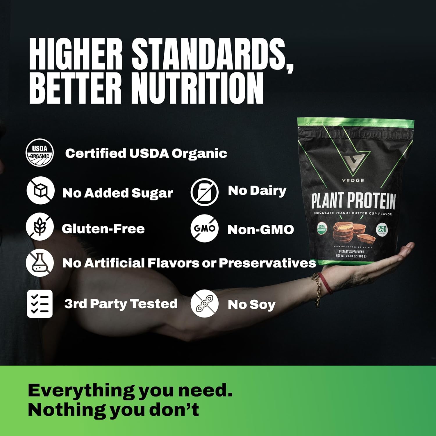 vedge Vegan Protein Powder - Plant Protein Powder with Pea, Pumpkin & Sunflower - USDA Organic, Amino Acids, Dairy Free, Gluten Free, Soy Free, Keto, Non GMO - Peanut Butter Cup - 20 Servings