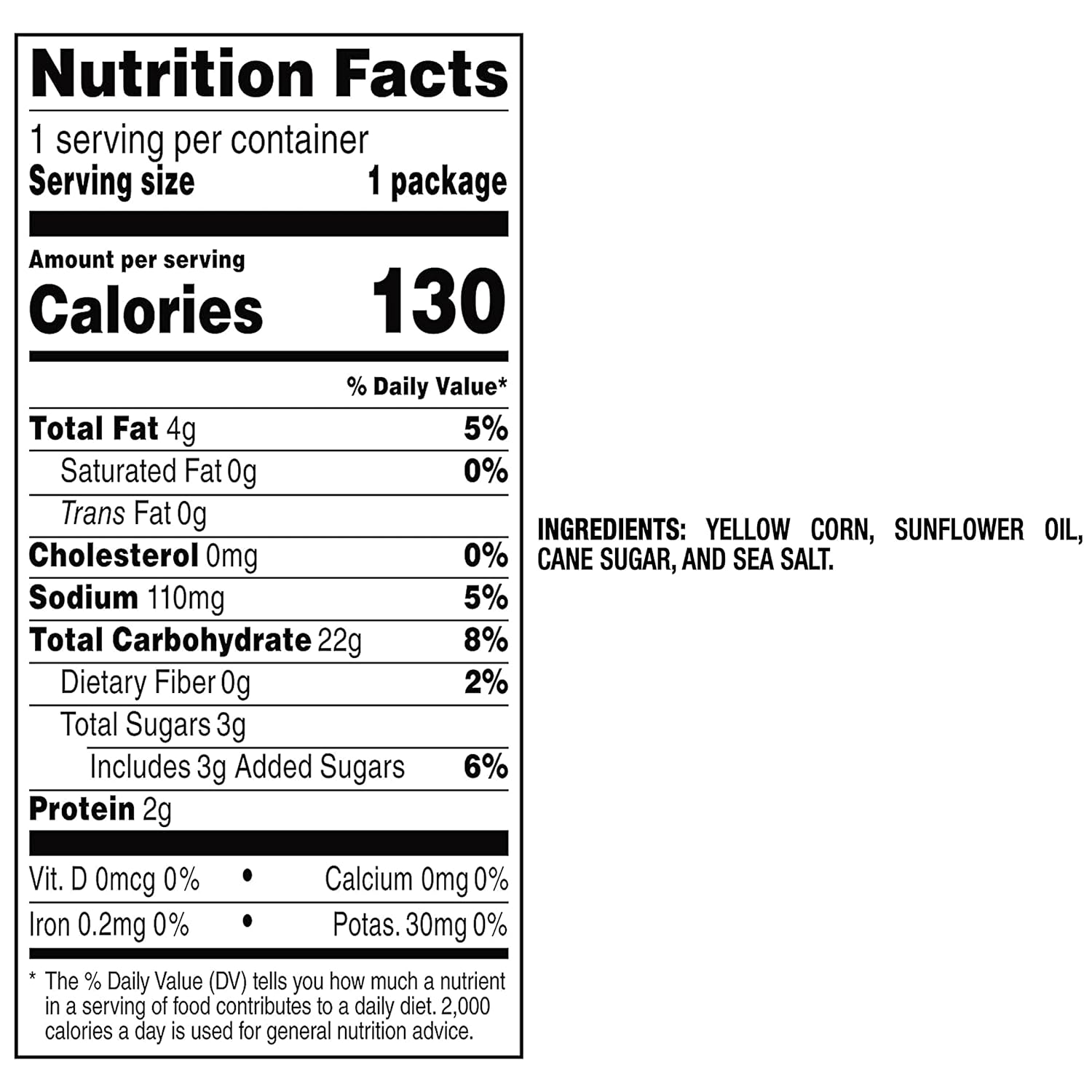 - WHOLESOME SNACKS: We took a carnival classic and did it BETTER, combining sunflower oil, cane sugar and just the right amount of sea salt Our snacks are made with Non-GMO Project Verified Corn, are never fried
