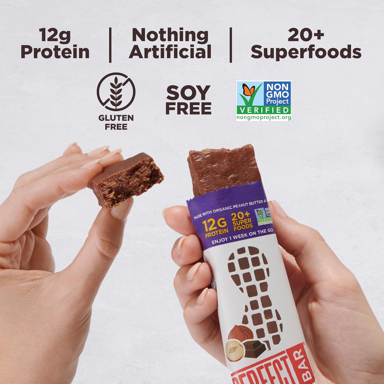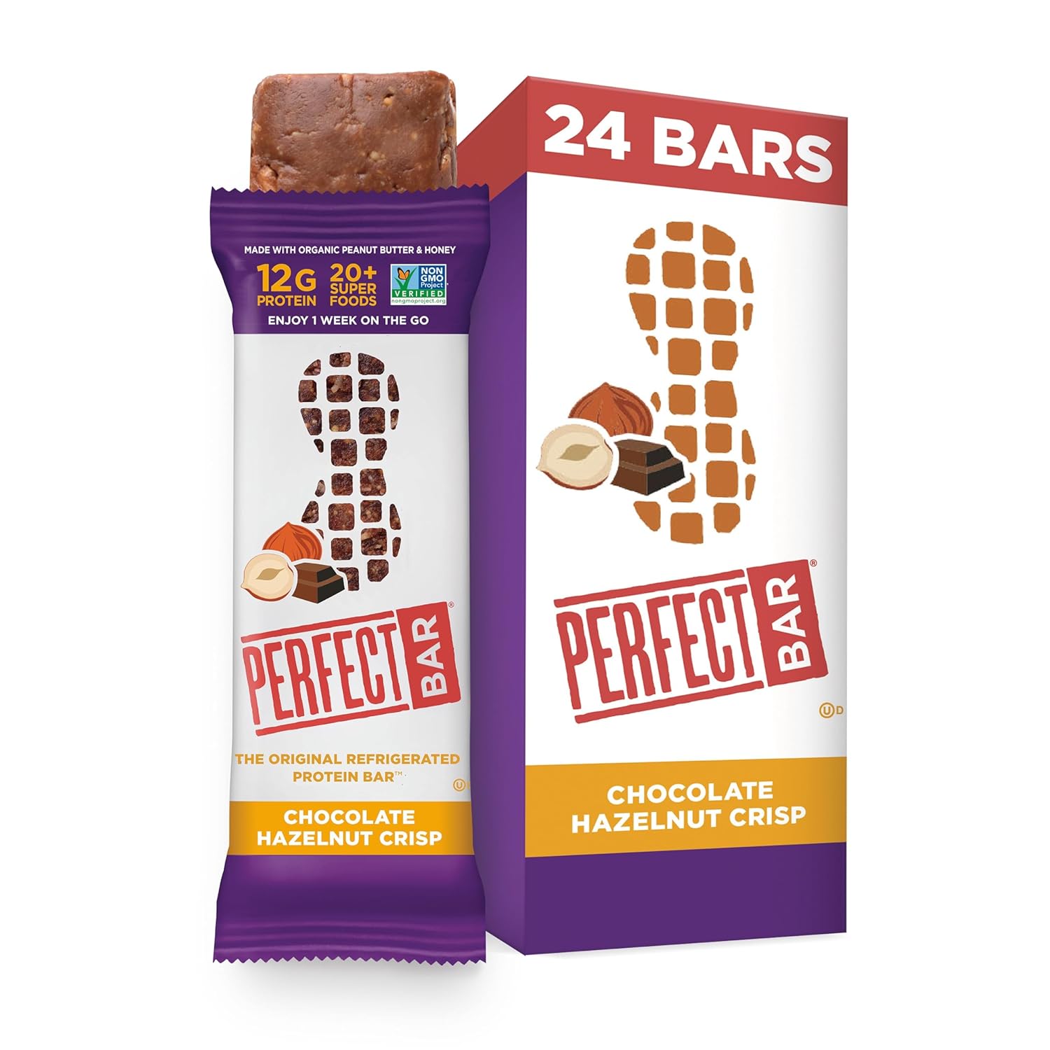 - Chocolate Hazelnut Crisp: Made with ground peanut and hazelnut butter, organic honey and Fair Trade dark chocolate, Perfect Bar is a delicious blend of creamy and crunchy. 12g of whole food protein and low GI
