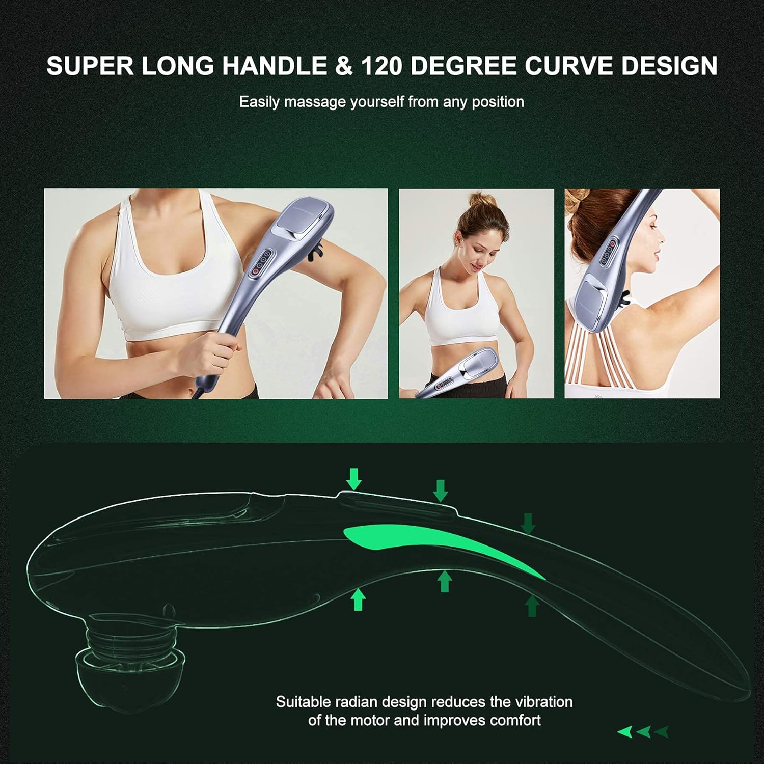 - Mega Design & Quality: This massager handle is ergonomically designed for an easy and comfortable grip. The 120-degree radian curved shape perfectly accommodates the physiological curvature of the human back. Made with quality materials, every single piece is quality tested before shipping.