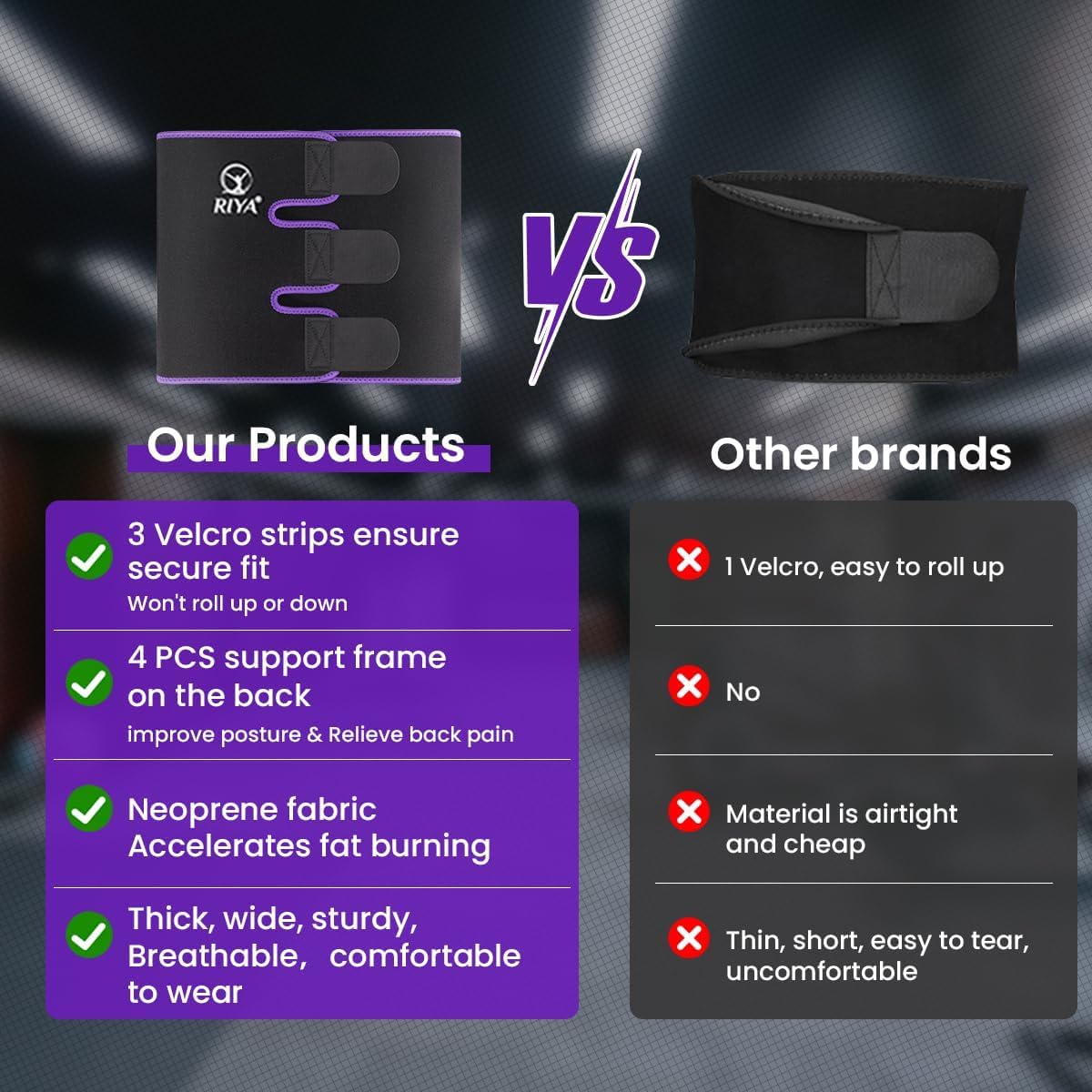 - Unique Back Support Waist Sweat Band Design——Our waist trimmer for women men has 4pcs plastic strips on the back, you can take these strips on and off as needed. RIYA waist trimmer belt provides tons of support for your back, helps to improve posture, and relief chronic low back pain; it is the perfect sweat waist belts for working out, jogging, squatting, bending lifting, or other exercises.