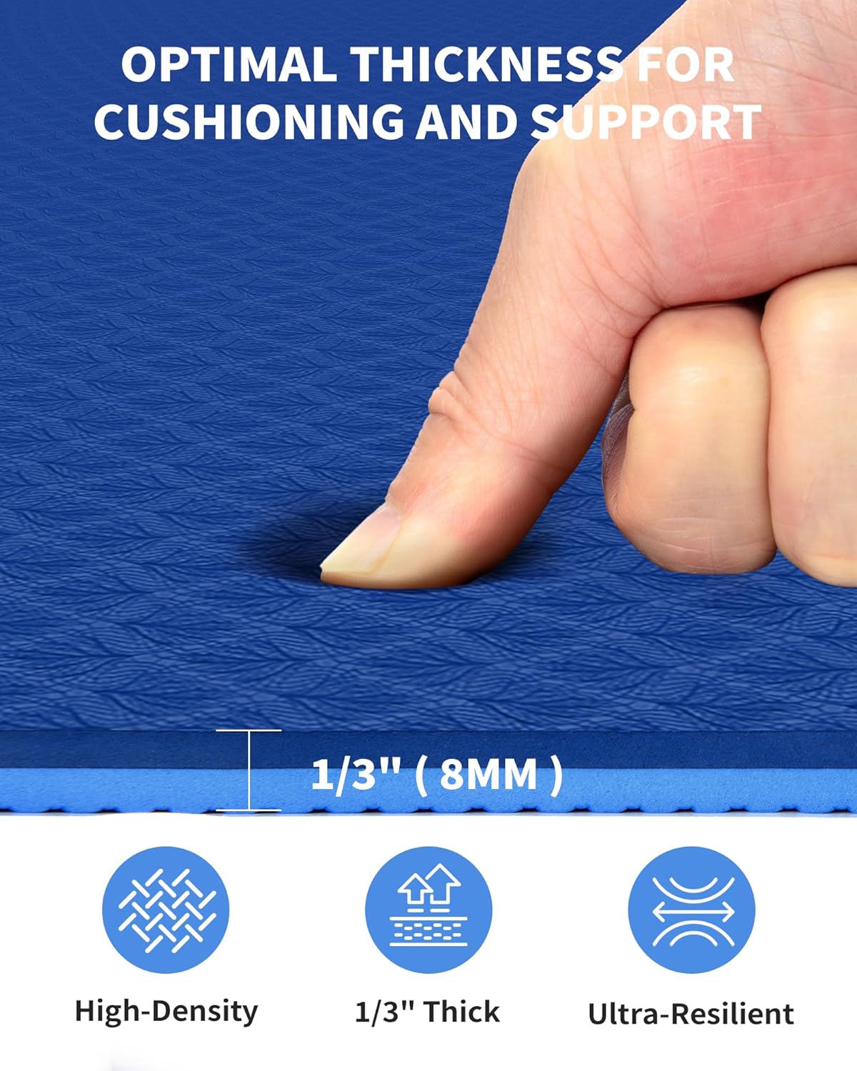 - Optimize Workout Performance: The extra thick yoga mat and the textured surface stabilizes your body, relieves pressure points in all yoga postures, aids in balance to hold postures longer, and protect your joints and knees without compromising support or stability; Great for beginners, pros and yoga trainers, fitness exercises or rehabilitative purpose