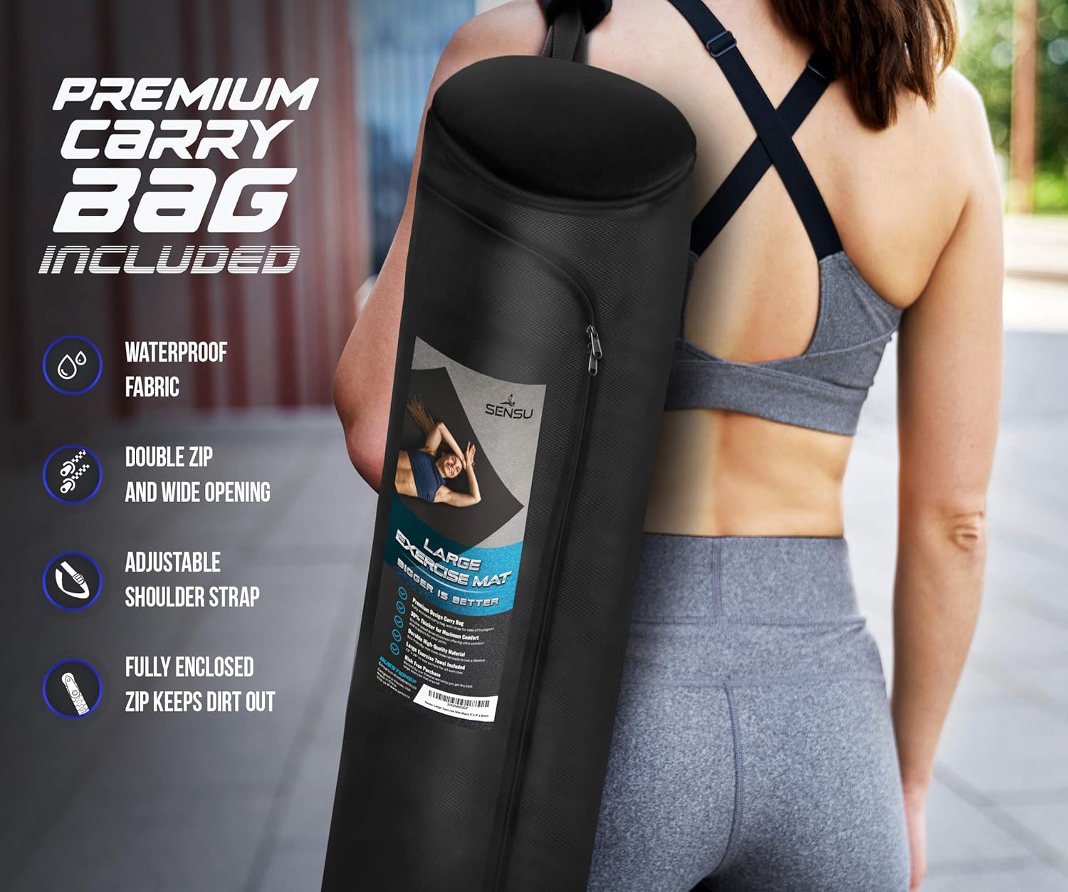 Sensu Large Exercise Mat – 6' x 4' x 8.5mm Extra Thick – Durable and Shoe-Friendly Workout Mat for Home Gym – Non-Slip Fitness Mat for Strength Training, Stretching, Cardio, and Balance Exercises