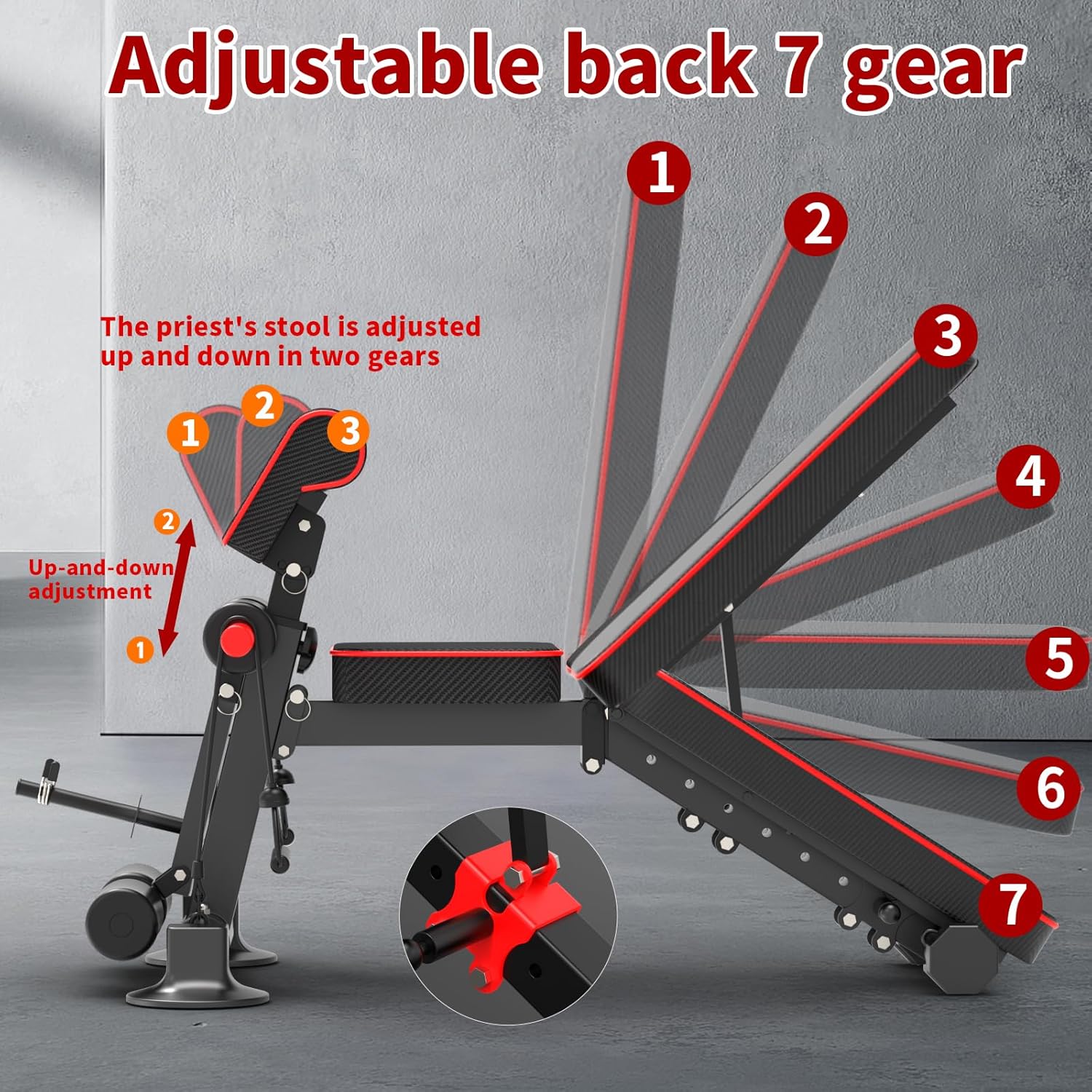- [Adjustable Weigch Bench]: The dumbbell bench is designed with 7 backrest cushion positions and 3 stopper adjustments, easy to adjust, one second to complete the adjustment. You could switch to the right position at will during the exercise, effectively improve the effect and time of the whole body exercise and increase the muscle shaping effect