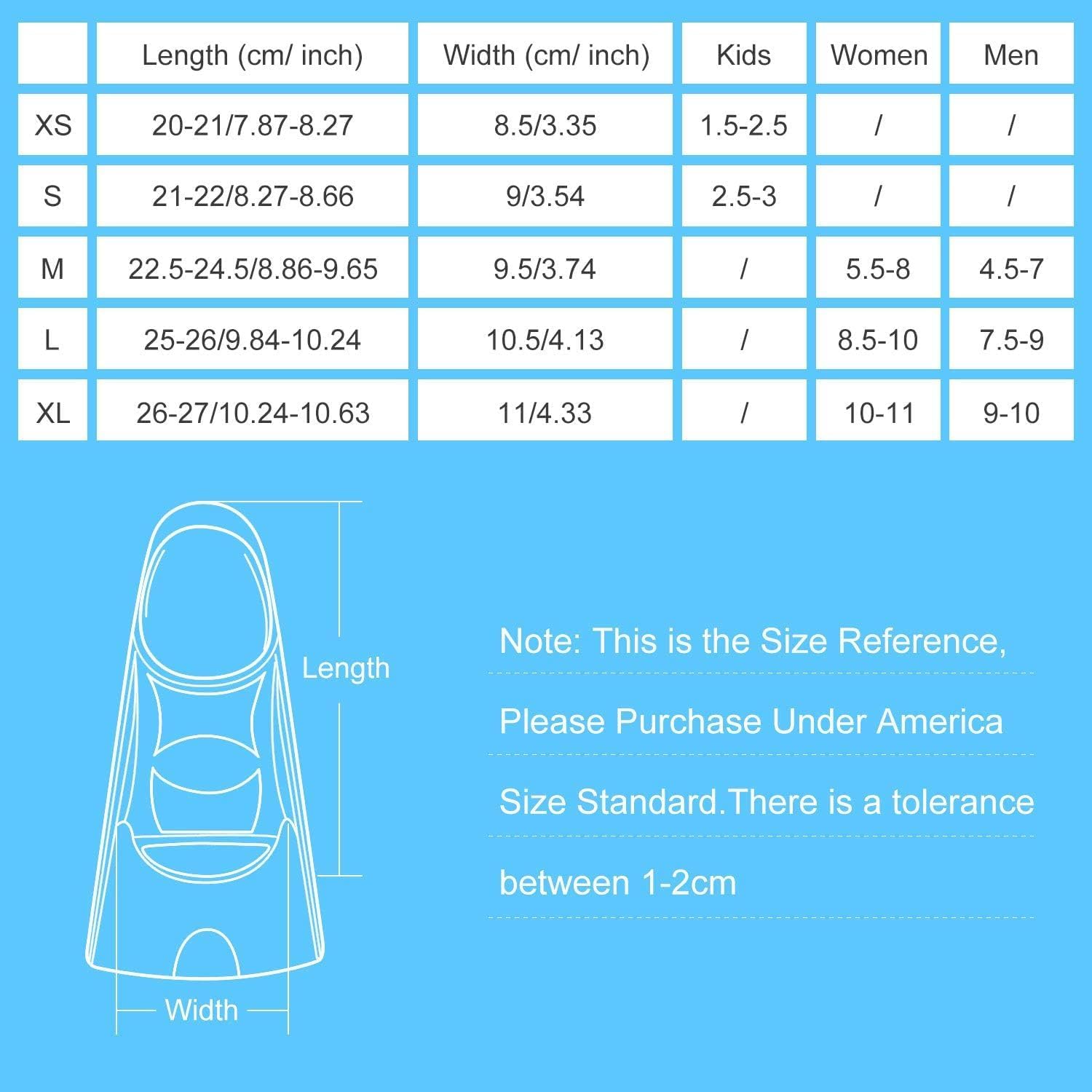 - 【Easier to Kick and Less Fatigue】Short fins are best for most snorkelers becasue they’re easier on your leg muscles. You don’t need as much power with each stroke, and each stroke will be shorter relative to using longer fins. Even though short fins generate less thrust, speed shouldn’t be a top priority for most snorkelers. You`ll be chilling at the surface most of the time, not swimming long distances through strong currents.