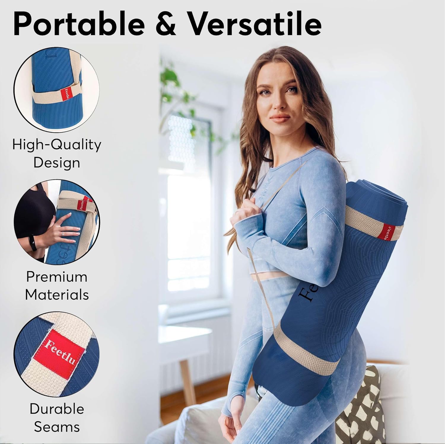 - [Large Size & Easy Transport] Generously sized at 74" x 26", it offers ample room to move freely. Weighing 4.4 lbs, it comes with a classic Feetlu yoga strap for easy carrying.