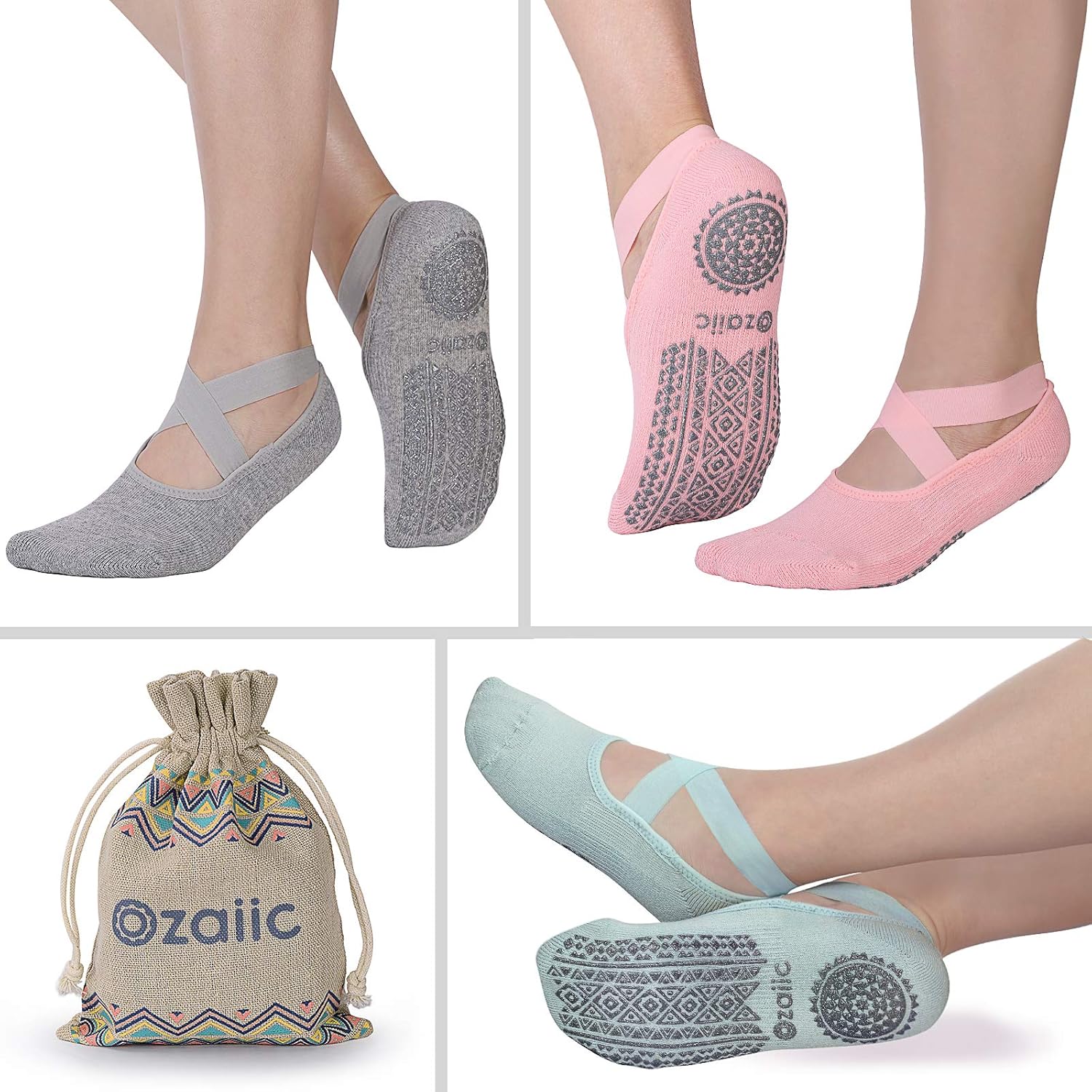 Ozaiic Yoga Socks for Women Non-Slip Grips & Straps, Ideal for Pilates, Pure Barre, Ballet, Dance, Barefoot Workout