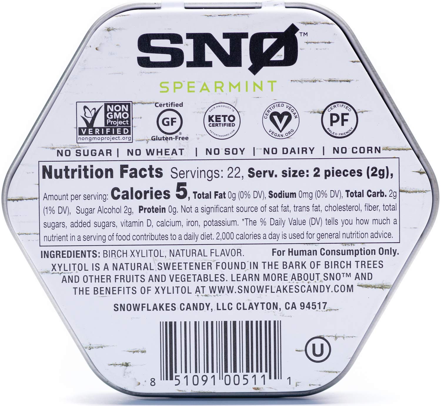 Spearmint KETO Xylitol Candy Chips (6-Pack) - SNØ 1.5oz Tin - Sugar-Free Candy With Only 2 Ingredients | Low Carbs, Diabetic-Friendly, Non-GMO, Vegan, GF & Kosher | Purest candy in the world!