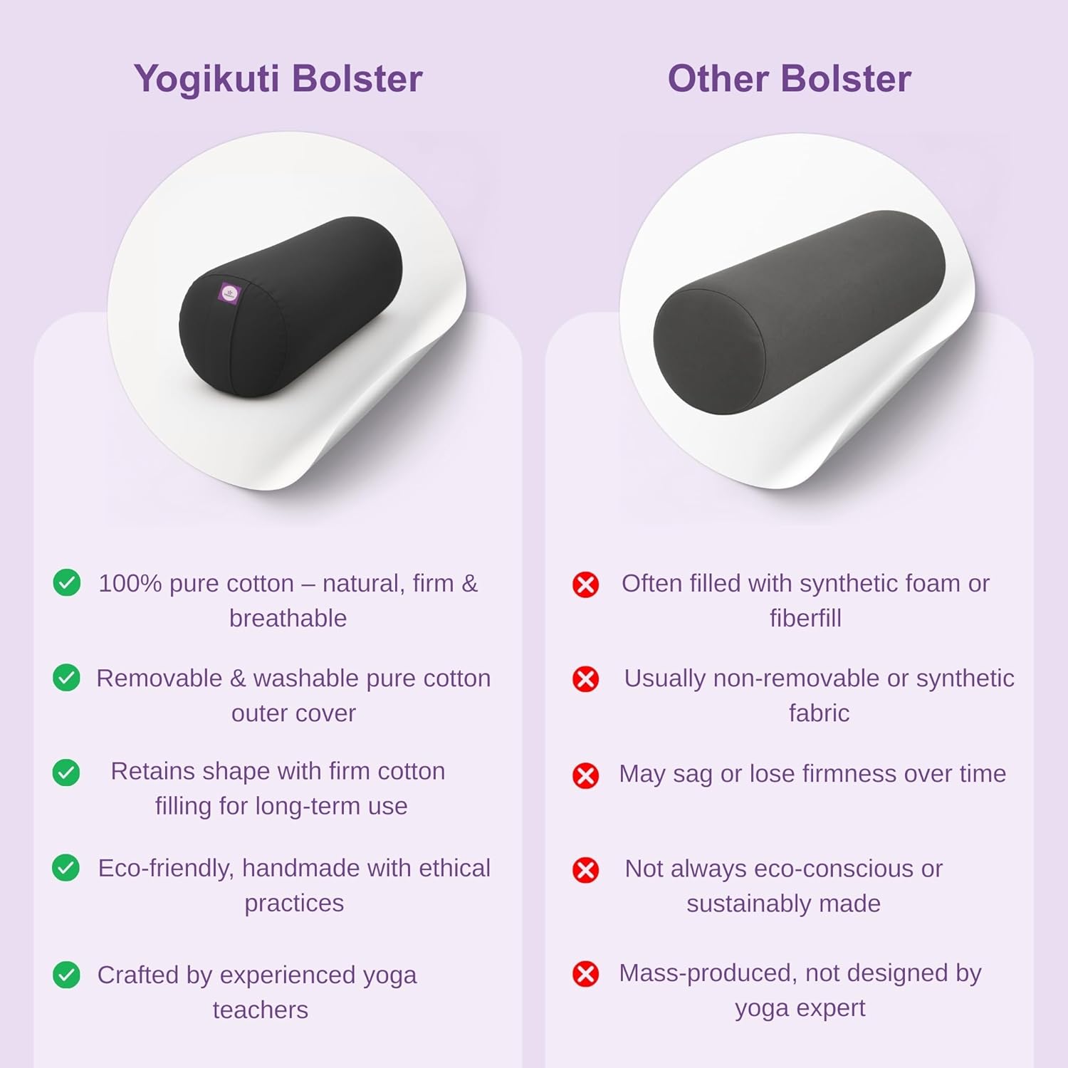 - Authentic Iyengar-approved support Handwoven from 100% Indian cotton, this bolster offers dense, structured support for backbends, seated poses, and restorative practice—trusted by serious practitioners