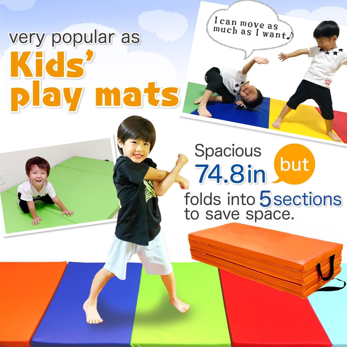 KaRaDaStyle Gymnastics Mat Folding Stretch Mats 75"x31"x1.2" Exercise Muscle Training Children Play Horizontal Bar Mat Yoga Sports Soundproof Home Use