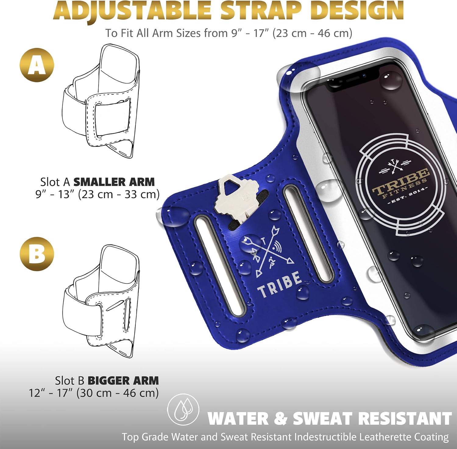 TRIBE Running Phone Holder Armband. iPhone & Galaxy Cell Phone Sports Arm Bands for Women, Men, Runners, Jogging, Walking, Exercise & Gym Workout. Fits All Smartphones. Adjustable Strap, CC/Key Pocket