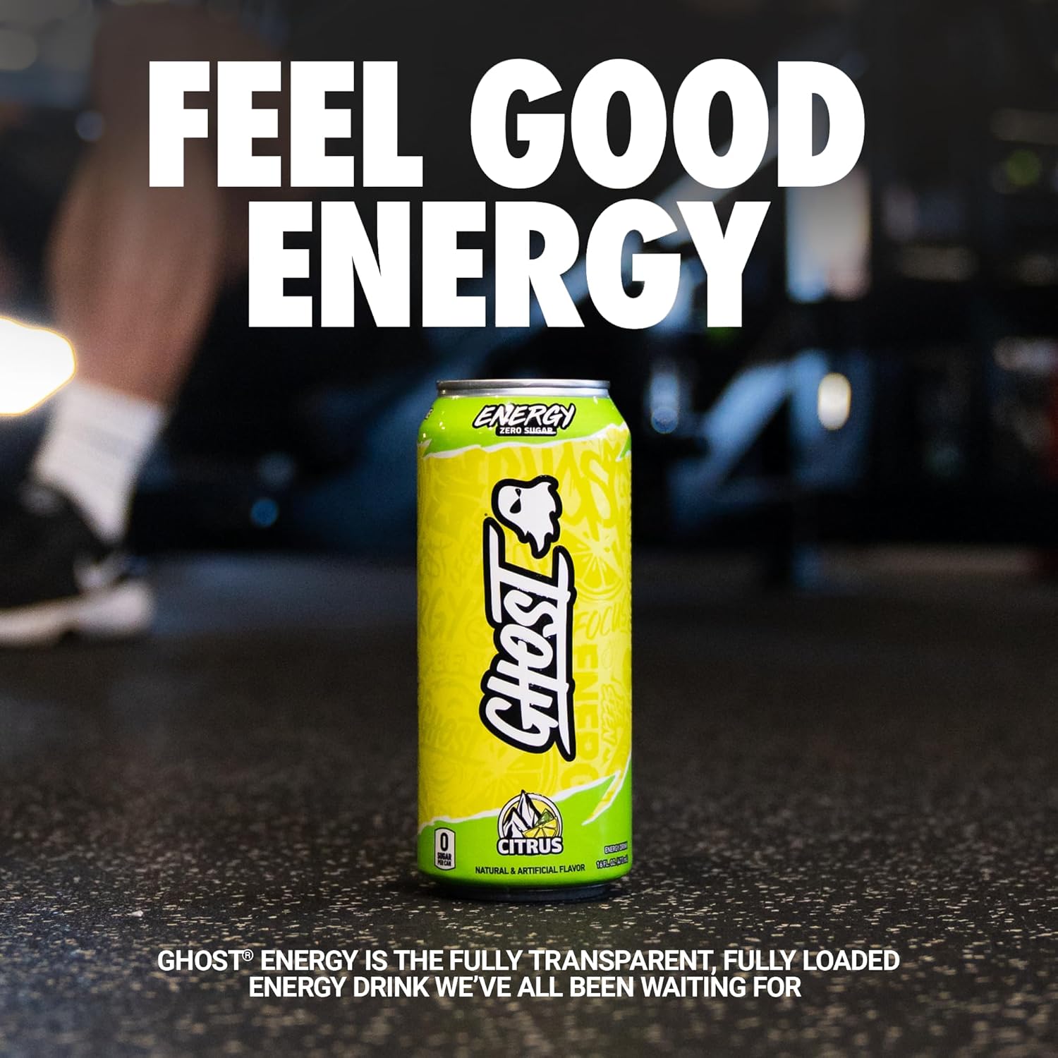 - Feel Good Energy: GHOST Energy is the fully transparent, fully loaded energy drink we’ve all been waiting for. Authentic Flavors. Zero Sugars.* No BS. Citrus flavor. 12-pack case contains 16oz cans. Only intended for persons 18 years or older. *GHOST Energy is low in calories.