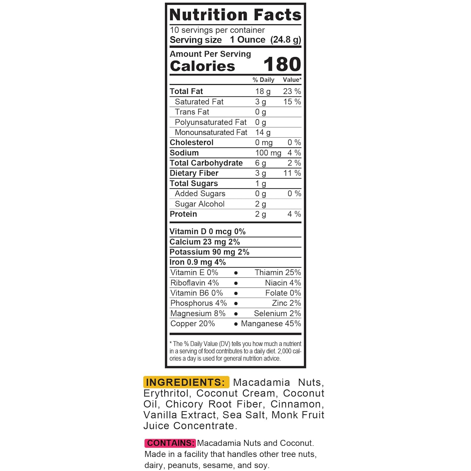 - Flavor : Cinnamon Macadamia