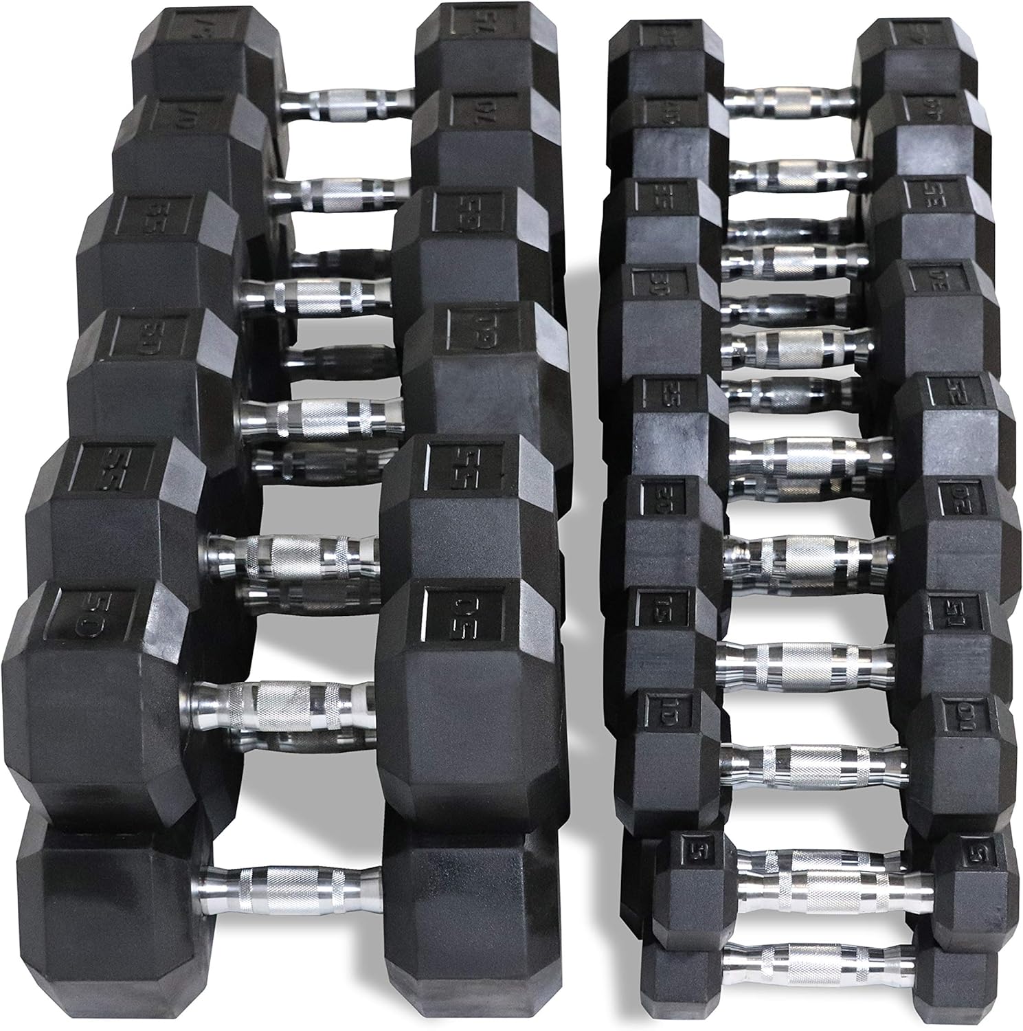 WF Athletic Supply Rubber Coated Hex Dumbbell Set, Multiple Choices Available - Dumbbells with Rack Stand and Mat, or Dumbbells Only (200/550/1200/2100/3000 LB)