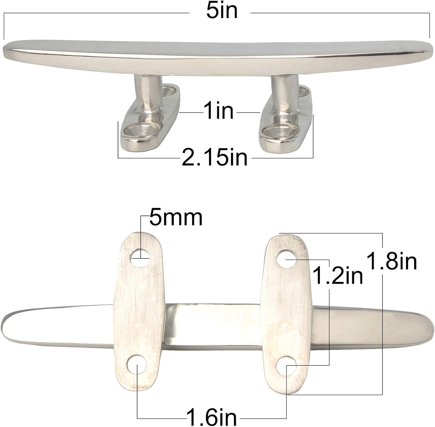 - 【Strong Materials】 The boat cleats 5 inch made of 316 stainless steel material, corrosion resistant in saltwater environment, offer excellent protection against rust and good performance,boat tie down cleats to can resist the harsh marine environment. dock cleat for dock lines,mooring and etc. dock boat cleats can be quickly applied to variety of ropes and docks
