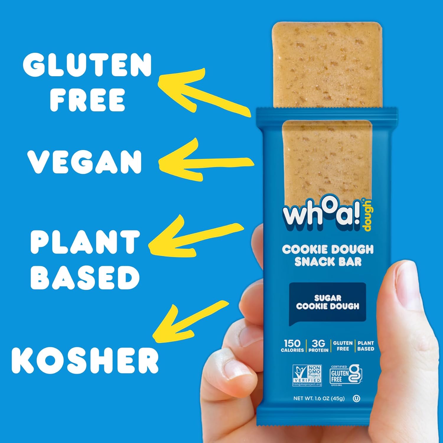 Whoa Dough Edible Cookie Dough Bars- Certified Non-GMO, Kosher and Gluten Free Bars - Healthy Snack Foods - Plant Based Snacks Made With Real Ingredients - Sugar Cookie Dough - 10 Pack