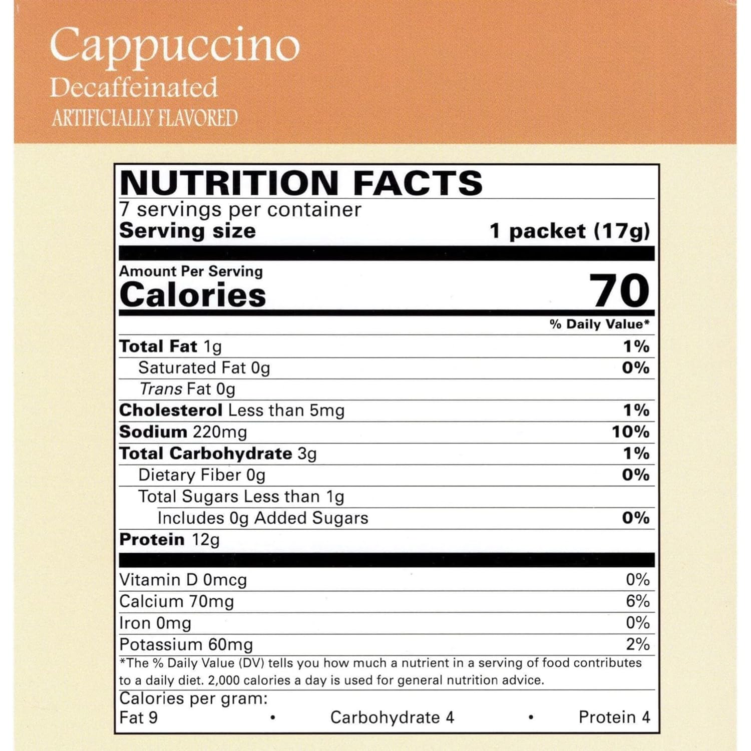 - Ideal for High Protein Diets β Crafted by Nutmeg State Nutrition, this decaf cappuccino drink is designed to fuel your day with balanced nutrition.