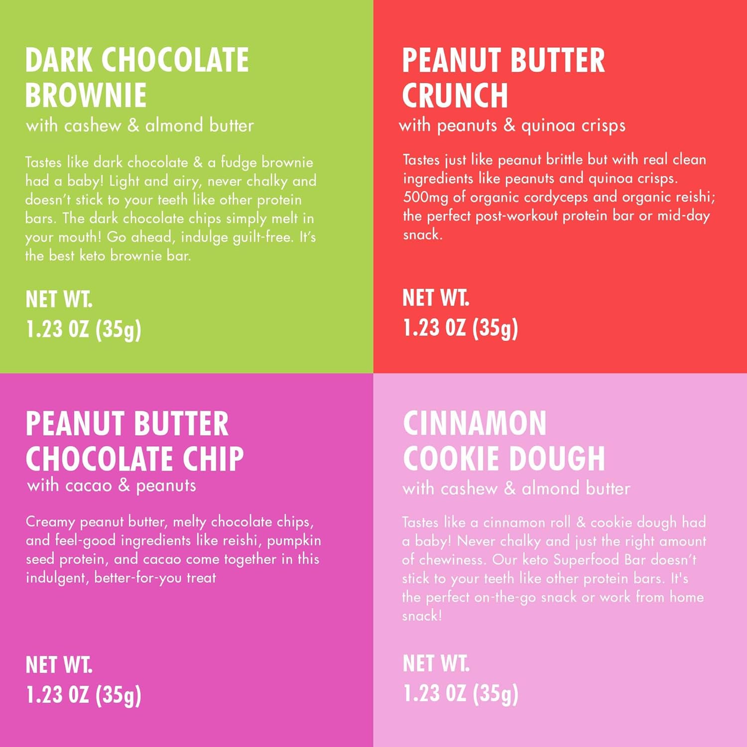- โ VARIETY PACK: Want to try each of our bestselling superfood keto protein bars? Our Variety 12-pack gives you the best of both worlds: clean plant-based ingredients you trust, delicious flavors you crave!