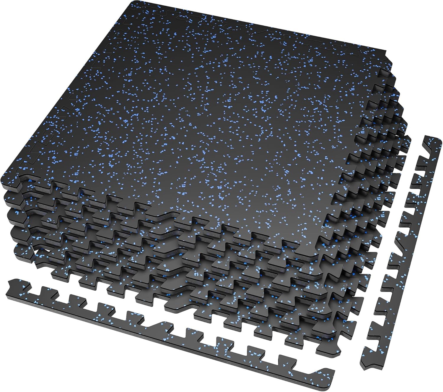 SUPERJARE 0.56'' Thick 6 Pcs 24 Sq Ft Rubber Top Exercise Equipment Mats, High Density EVA Foam Mats with Rubber Top, Interlocking Gym Flooring for Home Gym, Protective Workout Mat, Black/Blue