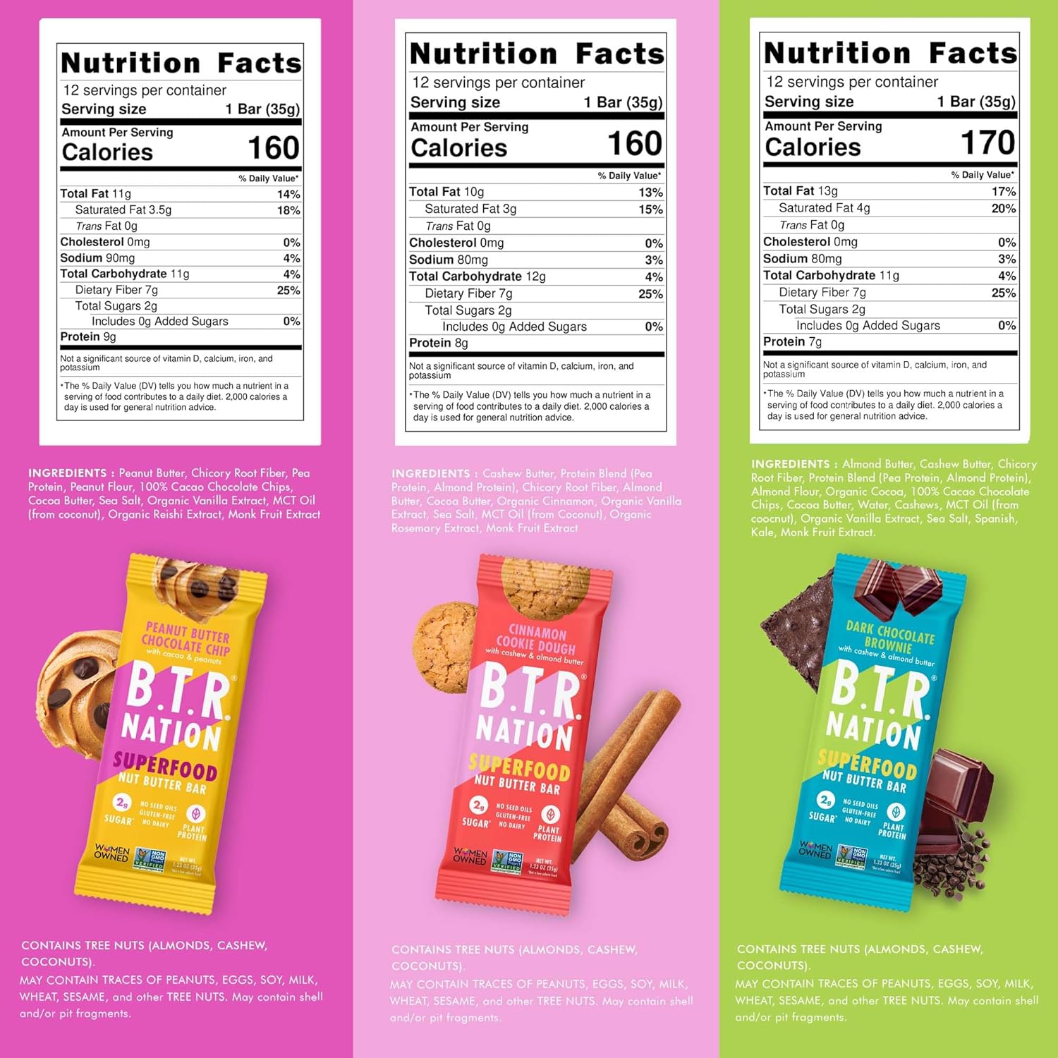- โ SUPERFOOD TO FUEL YOUR AM - PM: B.T.R. Bars are the first Protein Bars with a Purpose. Powered by plant-based superfoodss so you can feel really good about every delicious bite. These vegan & keto protein bars are made with the cleanest plant-based protein, 150 calories, and Registered Dietitian approved.