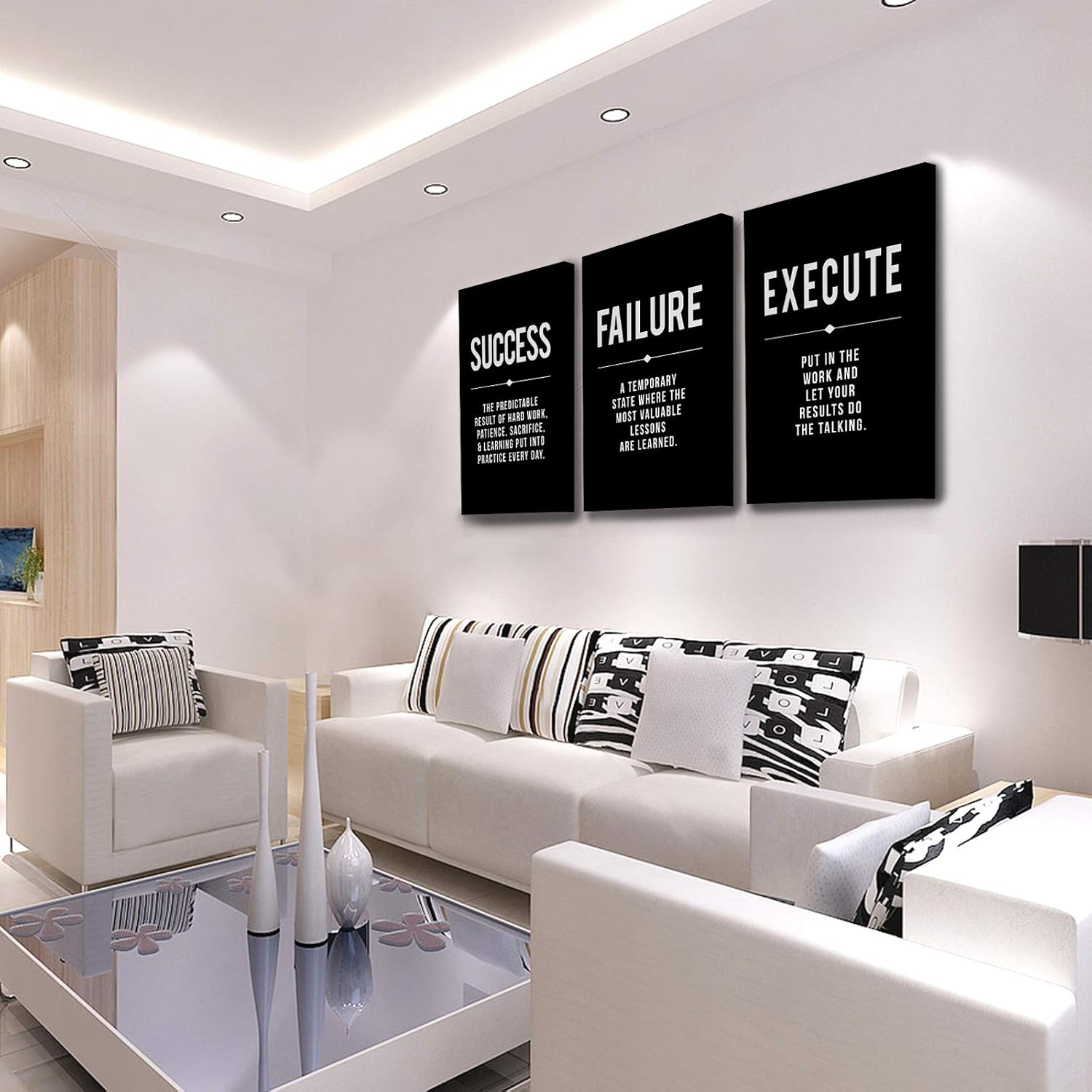 Framed Canvas Wall Art Success Quote, Office Wall Art, Black Large Poster, Positive Motivational Set of 3 Prints, Execute Failure Definition, Inspirational Print (A-3pcs,24x36inchx3pcs)