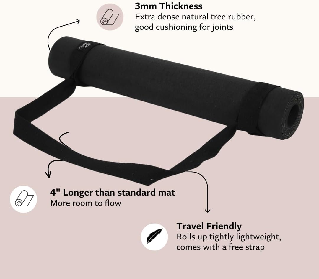- DURABLE & DENSE YOGA MAT : These durable and dense exercise yoga mats are 3mm thick preventing them from sinking hence giving your joints the additional cushioning you need during exercise like yoga, meditation, pilates or floor work out