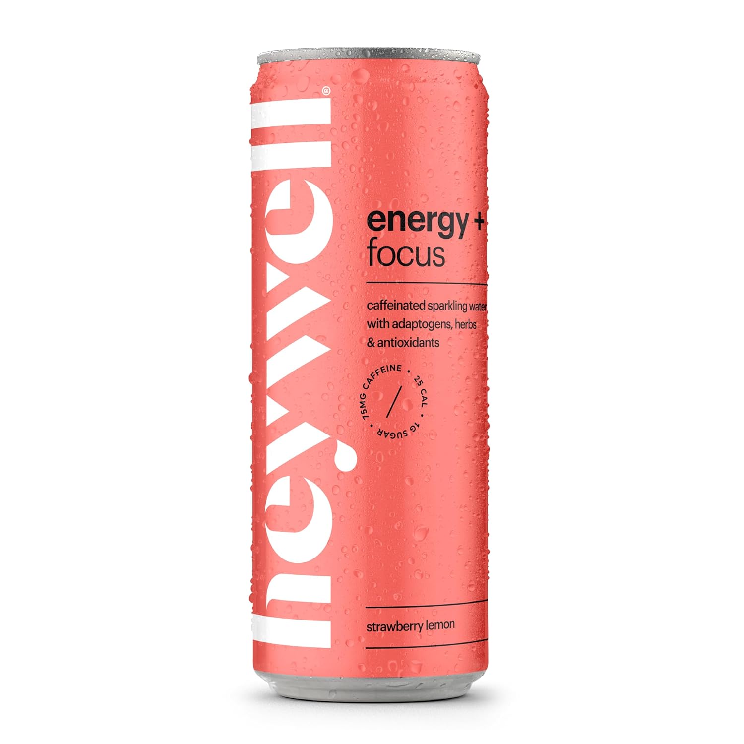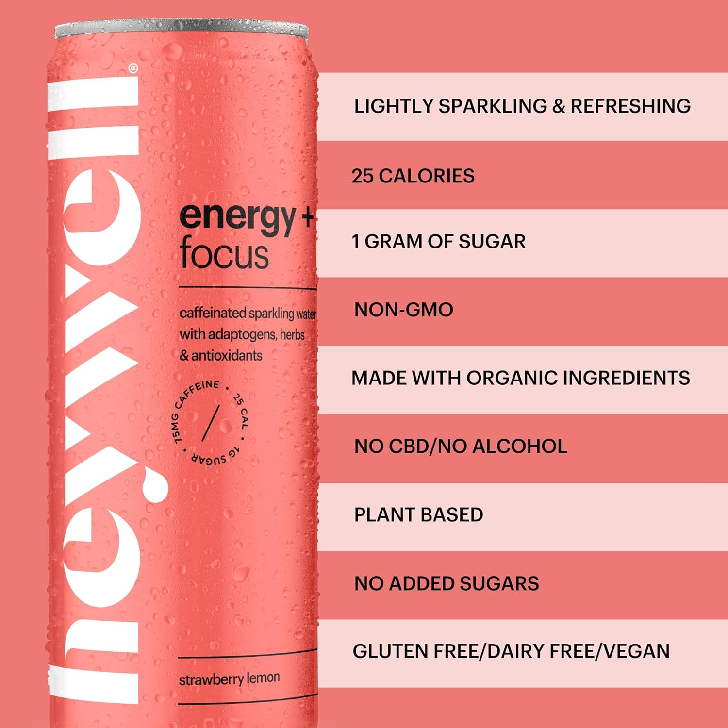 Heywell Sparkling Adaptogenic Water Energy and Focus, Strawberry Lemon Flavor 12 Fluid Ounce (Pack of 12) - Caffeinated, Organic, Non GMO, Vegan, Gluten Free, Dairy Free