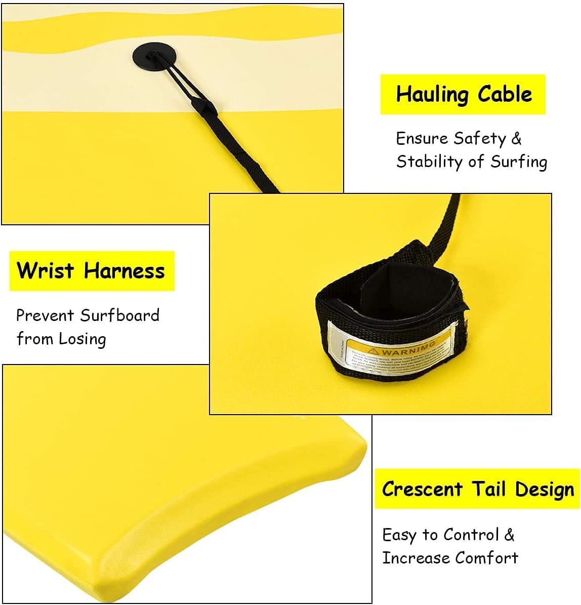Goplus 41''/37''/33'' Lightweight Body Board for Beach, Surf Board with EPS Core, XPE Deck, HDPE Slick Bottom, Wrist Leash, Bodyboard for Kids Adults Surfing