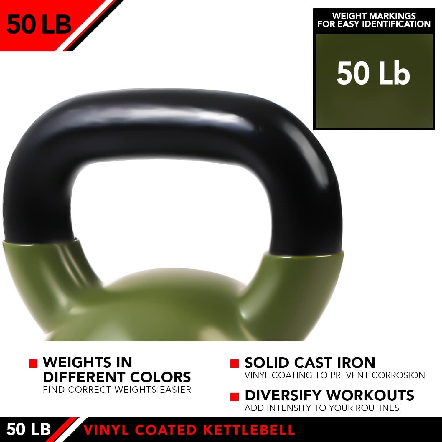 JFIT Kettlebell Weights Vinyl Coated Iron - 12 Size Options, 5lbs-50lbs - Coated for Floor and Equipment Protection, Noise Reduction, Ballistic, Core, Weight Training