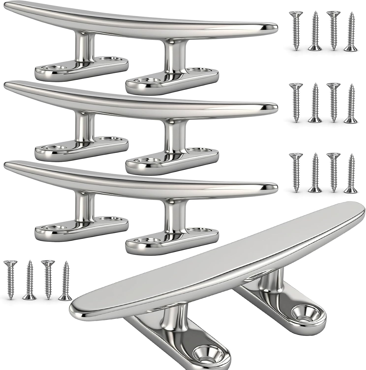 - 【Exquisite Workmanship】Our stainless steel boat cleats is high polished surface,precise,smooth and beautiful;for mirror-like appearance to match marine uses watercraft/boat/yacht,boat docks, decks, piers for tying up boats, kayaks. all of our stainless steel boat cleats for dock are strict tested to ensure the best quality,these stainless steel dock cleats can stand up to a variety of weather, which is stronger