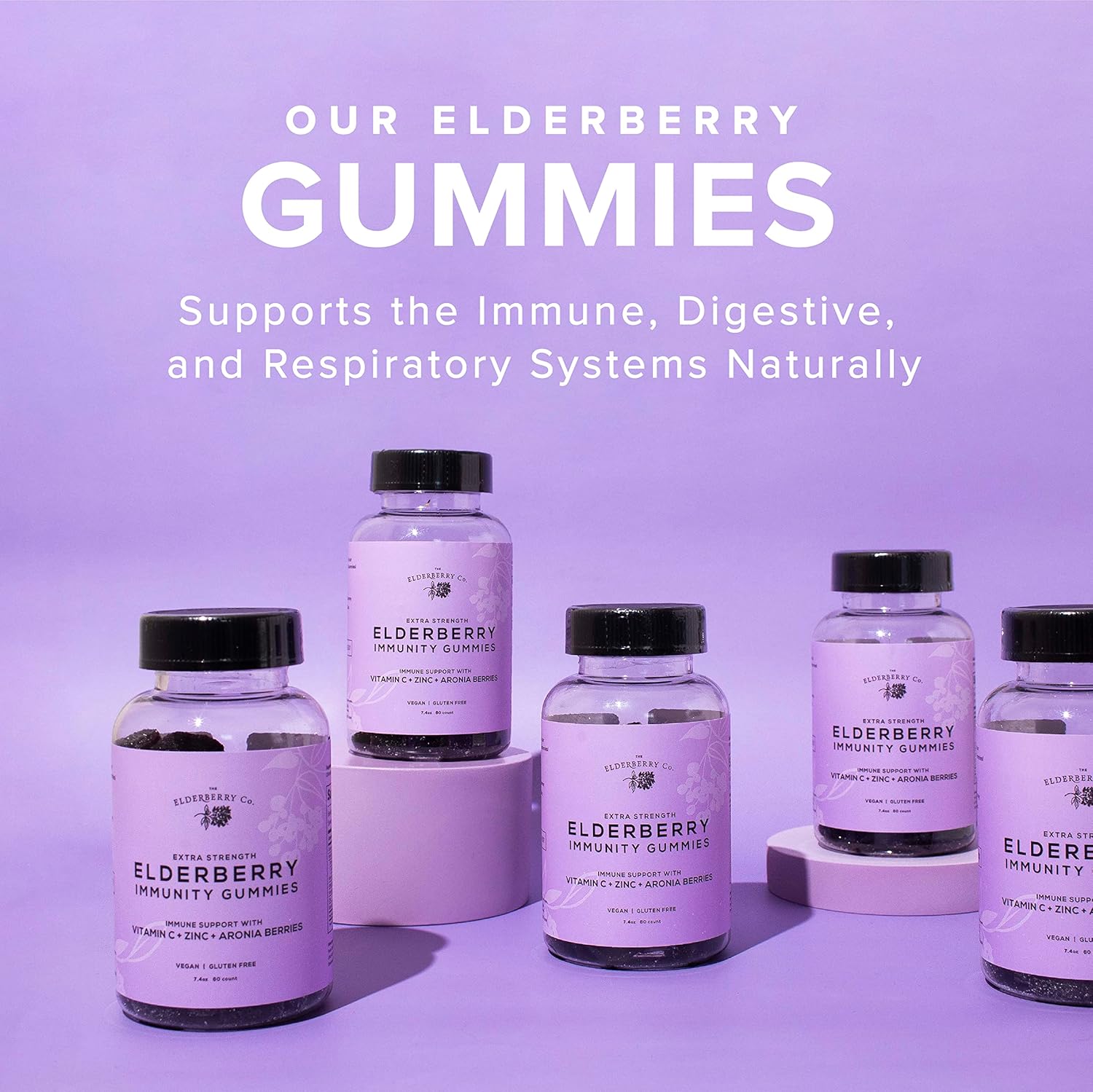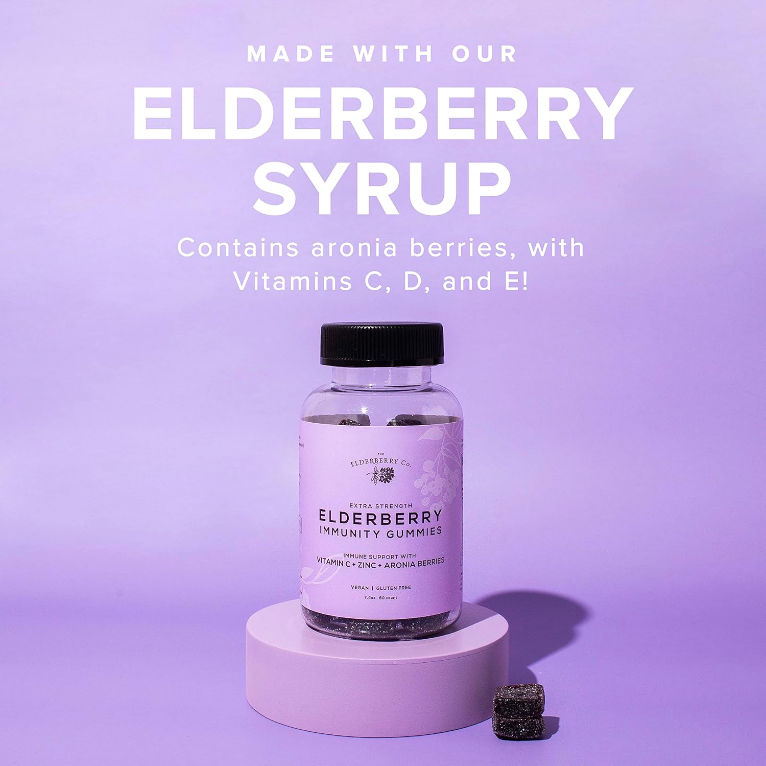 The Elderberry Co. Extra Strength Elderberry Gummies with Vitamins C, D,E and Zinc for All-Natural Immune Support, No Artificial Ingredients (90 Count)
