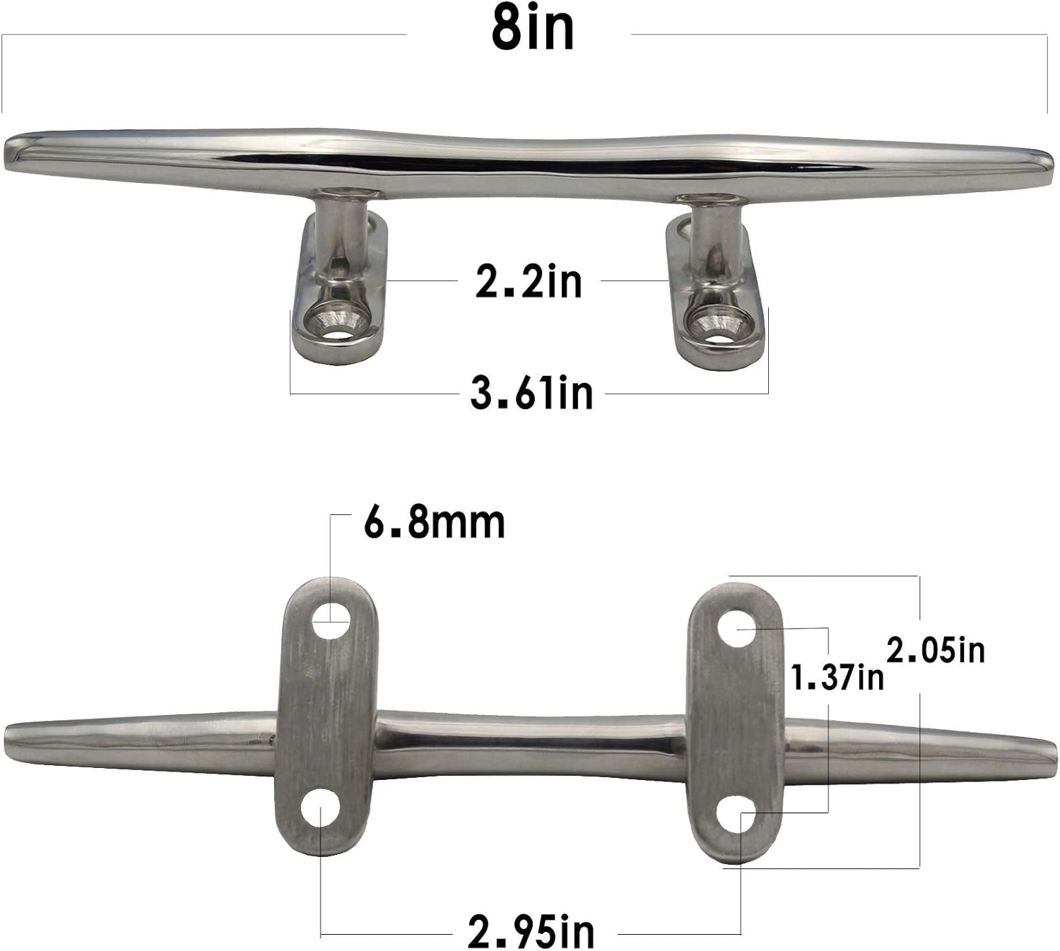 - 【Exquisite Workmanship】Our stainless steel boat cleats is high polished surface,precise,smooth and beautiful;for mirror-like appearance to match marine uses watercraft/boat/yacht,boat docks, decks, piers for tying up boats, kayaks. all of our stainless steel boat cleats for dock are strict tested to ensure the best quality,these stainless steel dock cleats can stand up to a variety of weather, which is stronger