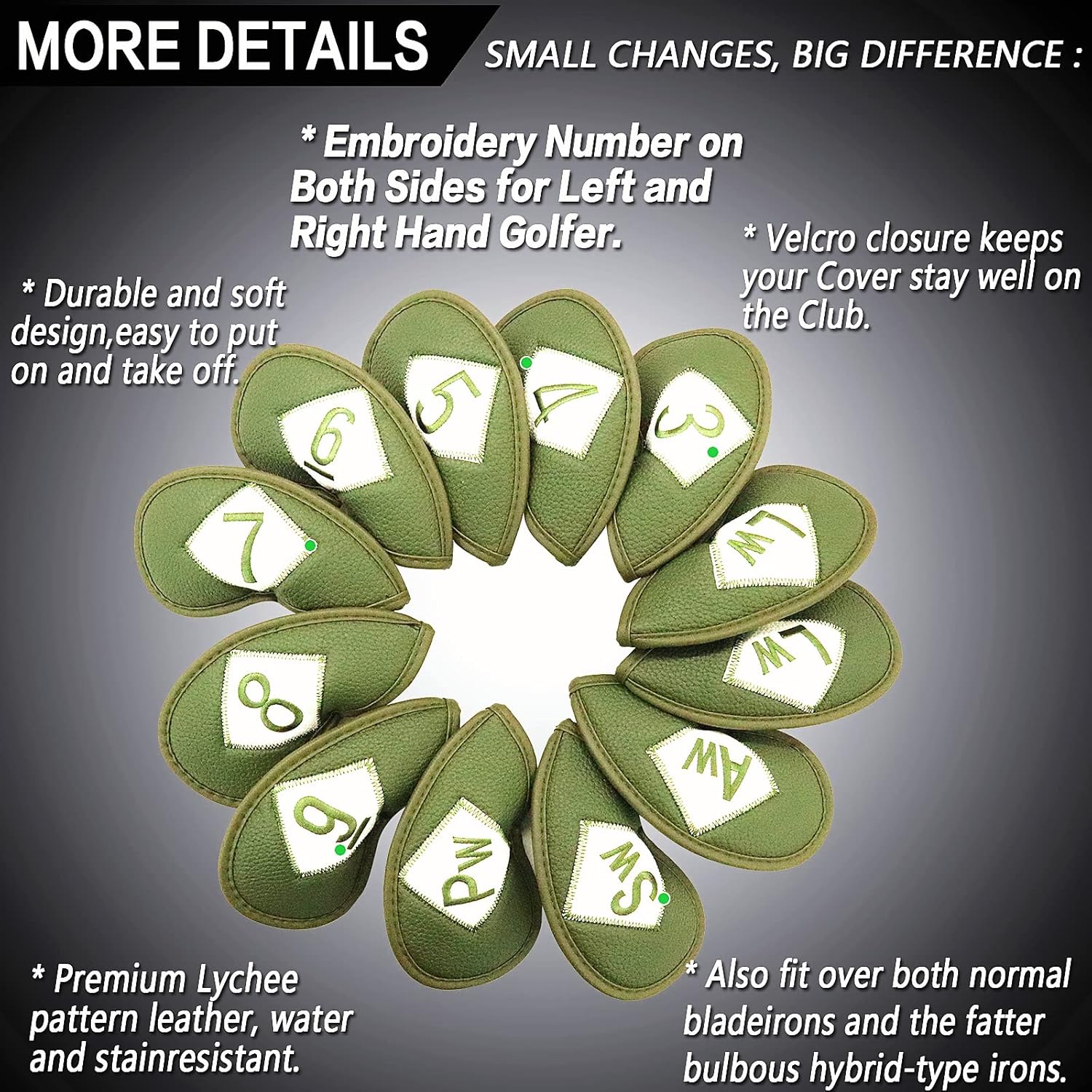 - Keep Your Irons Safety Anywhere: These Premium Golf Head Covers are a Must-have for Every Golfer who Values Protection and Style. Made from High-quality Synthetic Leather, They’re Water-resistant and Provide a Snug Club Fit to Shield Your Irons from Scratches, Dings, and Wear. Designed for Both Daily Play and Travel Convenience, They Add Sleek Aesthetic Appeal to Your Golf Bag Organization.