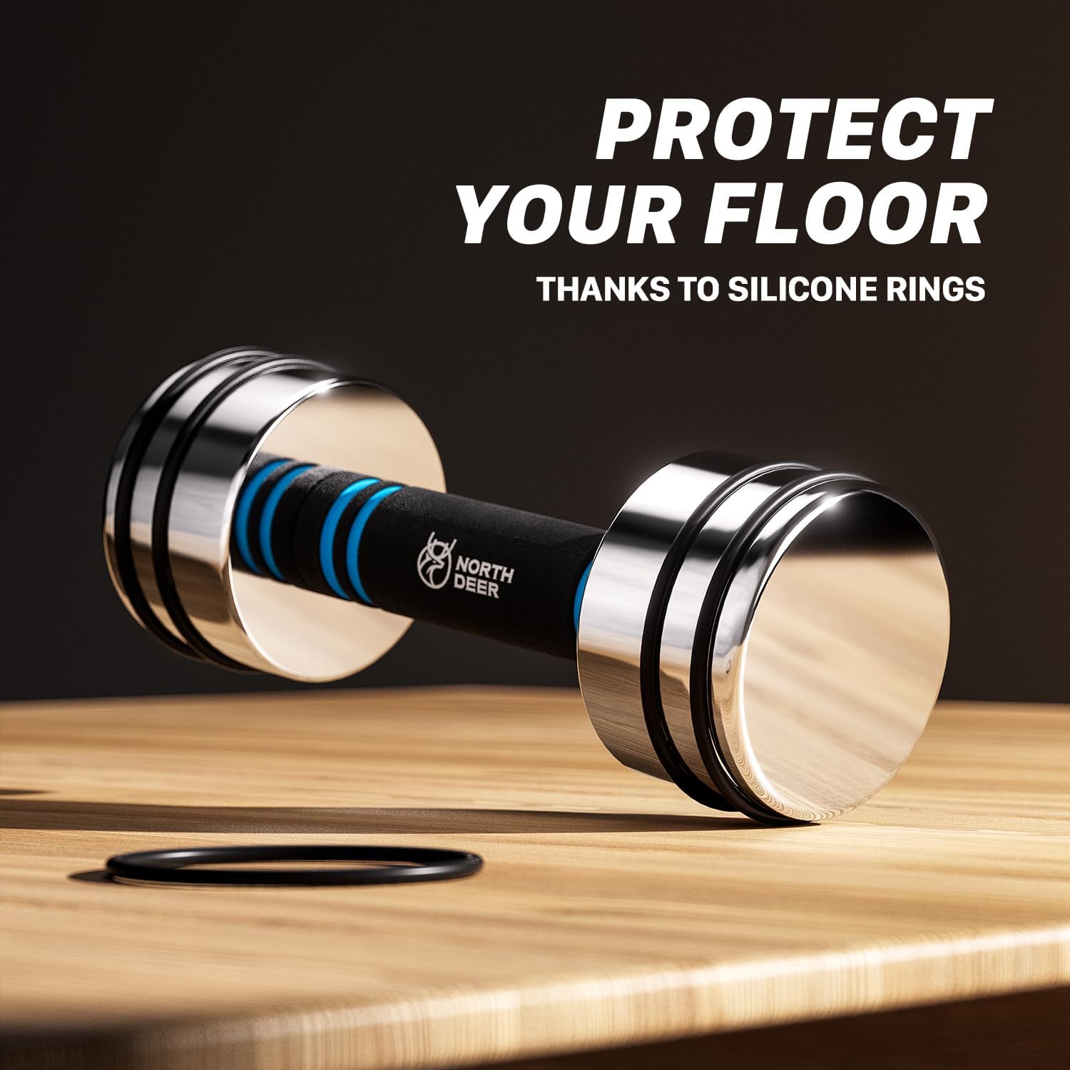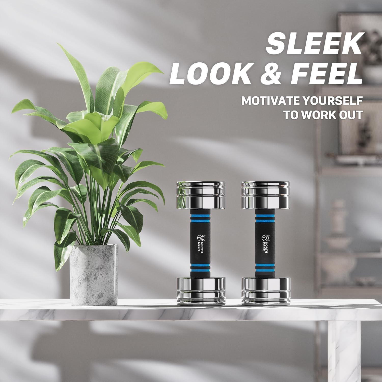 Northdeer Steel Dumbbells Ultracompact & Adjustable Chrome Dumbbell with Foam Handles 5lb 10lb 15lb 20lb 30lb 50lb Home Gym Workout (Choice of Size)