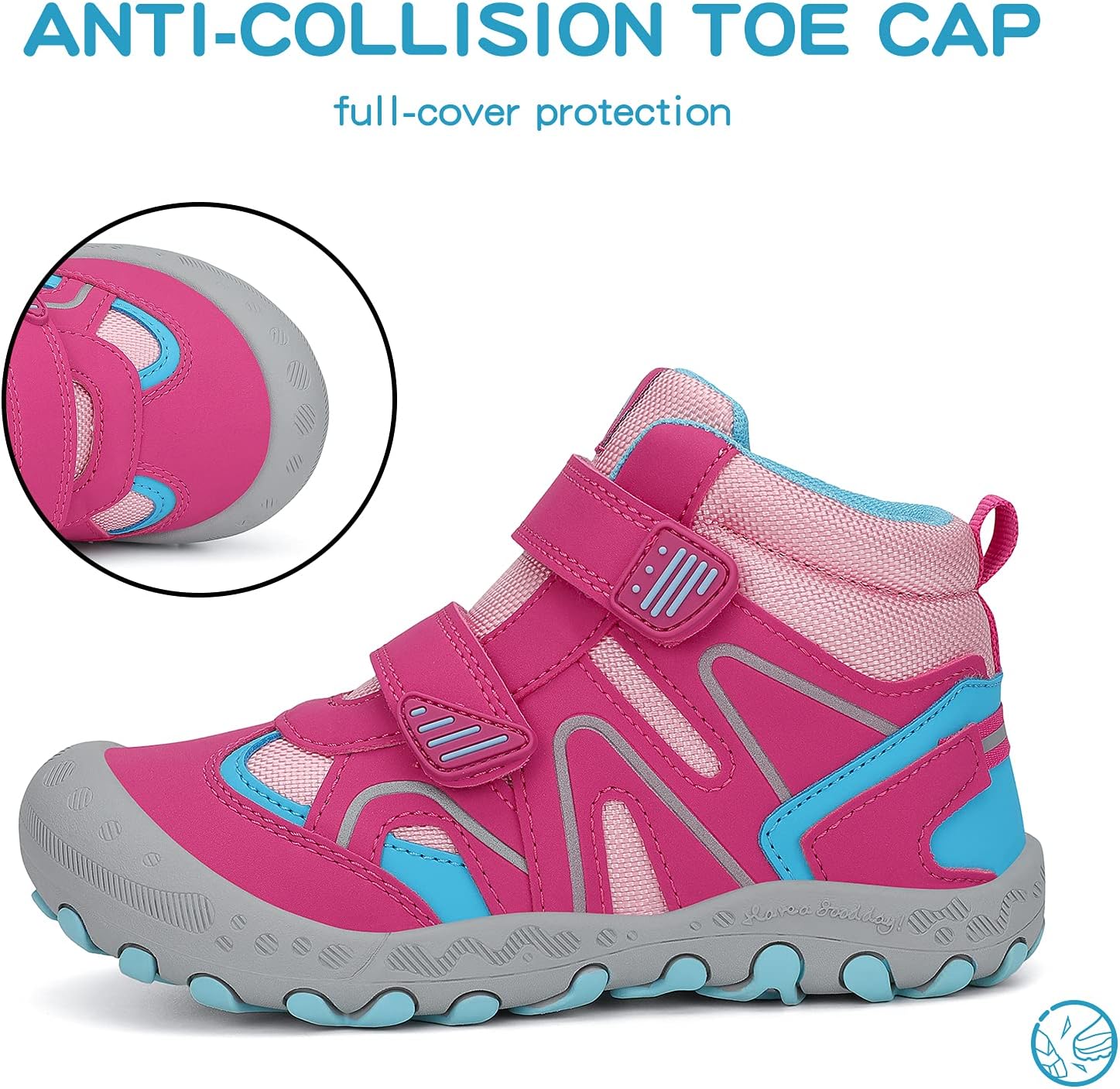 - ANTI-COLLISION: Full-cover toe cap designed for prevent kid's toes from the injury of falling objects and collision of hard objects.