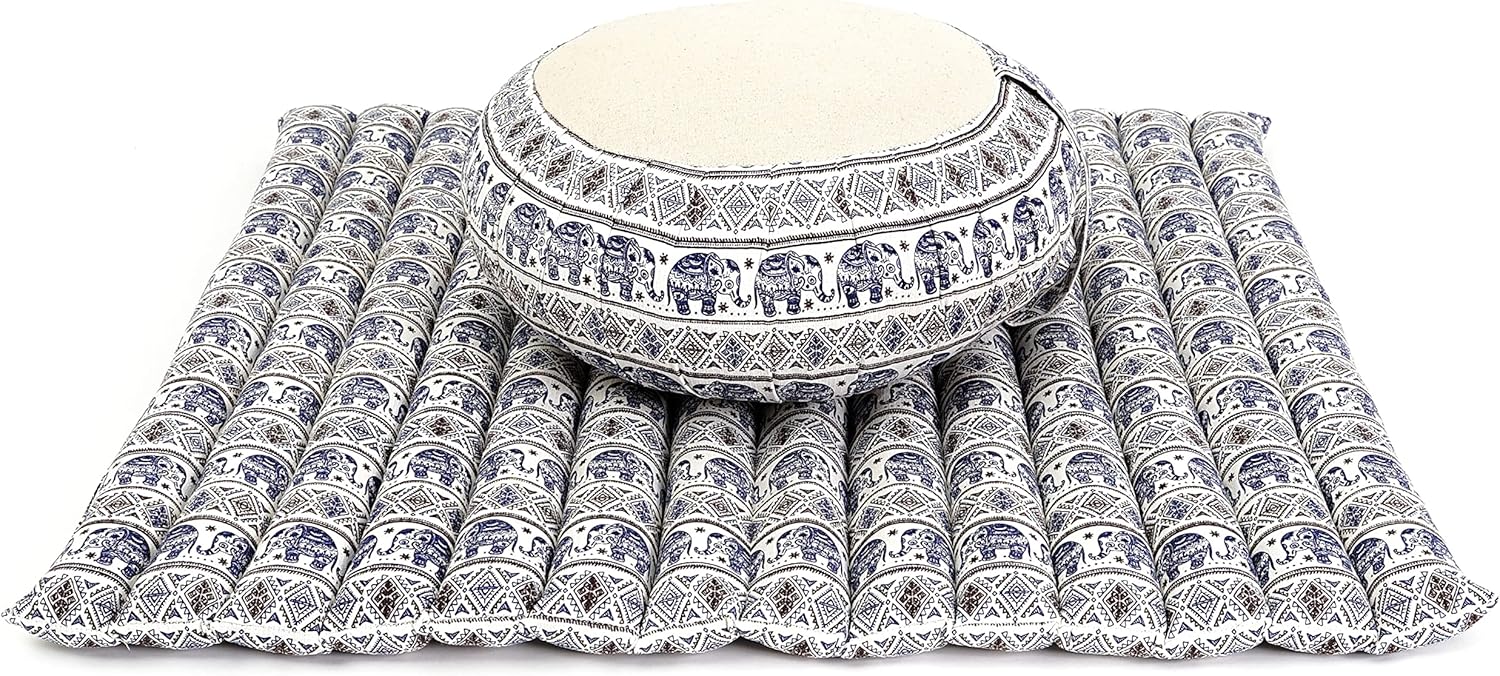 - Contents: The yoga-equipment includes a light and supportive sitting mat of 28 x 28 inches (WxDxH) and a zen cushion of 14 x 14 x 8 inches (WxDxH), which is particularly comfortable for floor seating