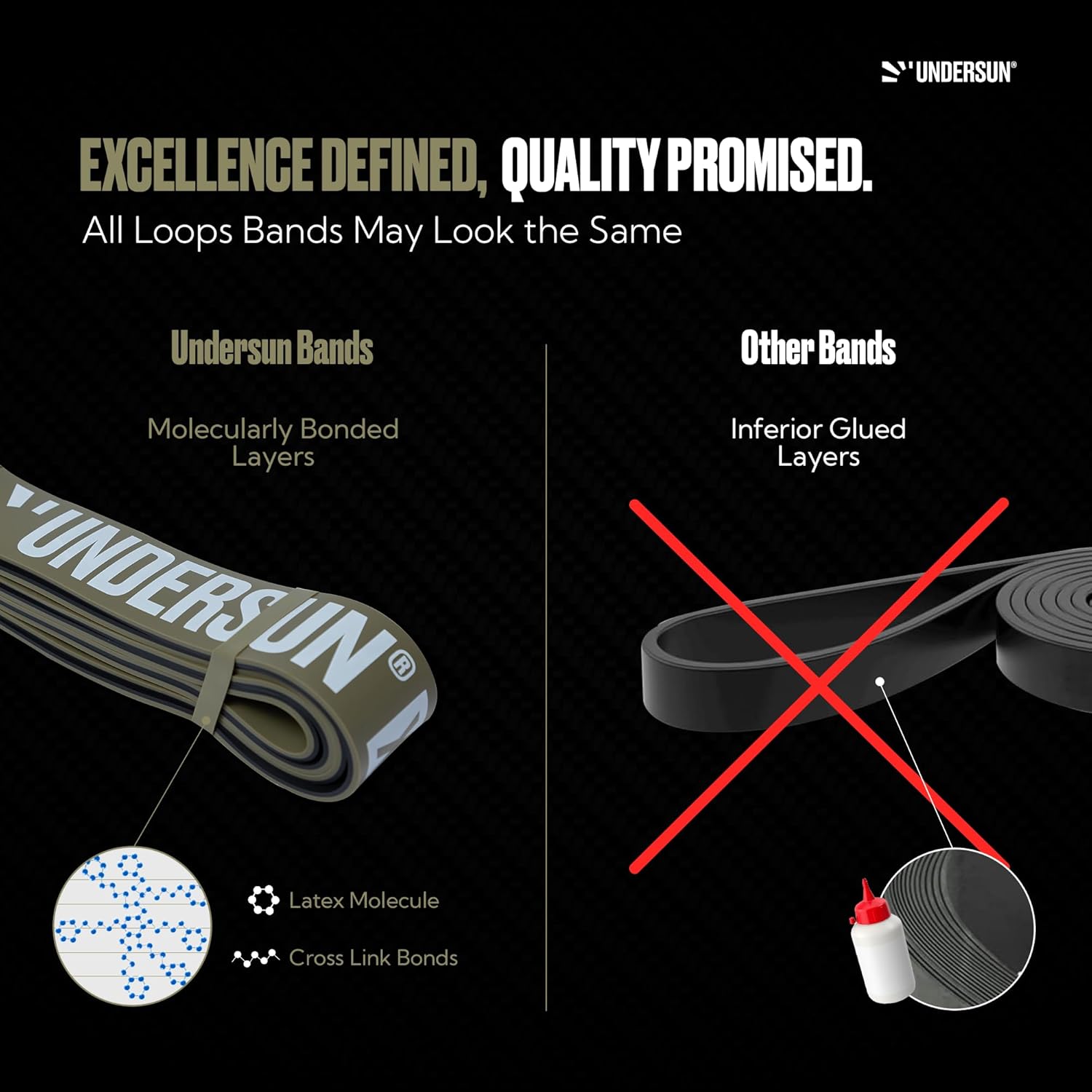 - SUPERIOR STRENGTH. PREMIUM CRAFTSMANSHIP β Experience the pinnacle of workout bands resistance with our multi-layered bands, created through a superior molecular-bonding process for unmatched strength and resistance. Ignore the noise from other workout equipment brands. Visible layers in a band are a clear sign of inferior, glued construction. Choose Undersun stretch bands for exercise and get lasting performance.