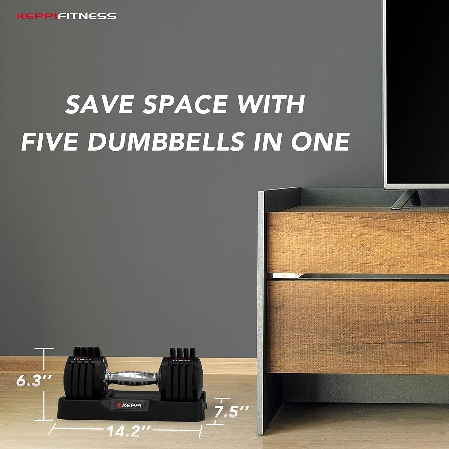 Keppi Adjustable Dumbbells Set-25lb/40lb/55lb/60lb, Anti-Slip Metal Fast Adjust Weight Handle, Exercise & Fitness for Full Body Workout - Adjustable Dumbbell Series