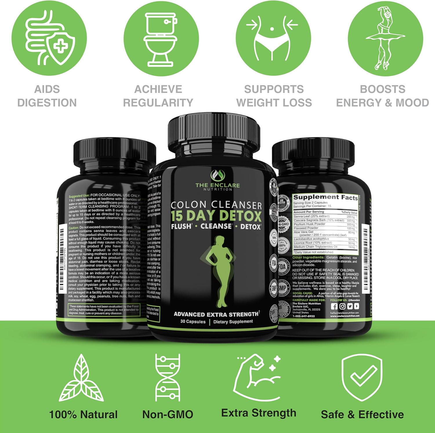 - Advanced Colon Cleanse for Women and Men: Enclare’s 15 Day Detox Colon Cleanser is designed to support digestive health and made with a blend of natural gut-friendly ingredients like psyllium husk, senna, and probiotics. This gentle gut cleanse for women and men promotes healthy bowel movements, helps maintain regularity and supports overall gut health. Use as part of your 15 day cleanse routine to debloat, feel lighter, refreshed, and more balanced.*