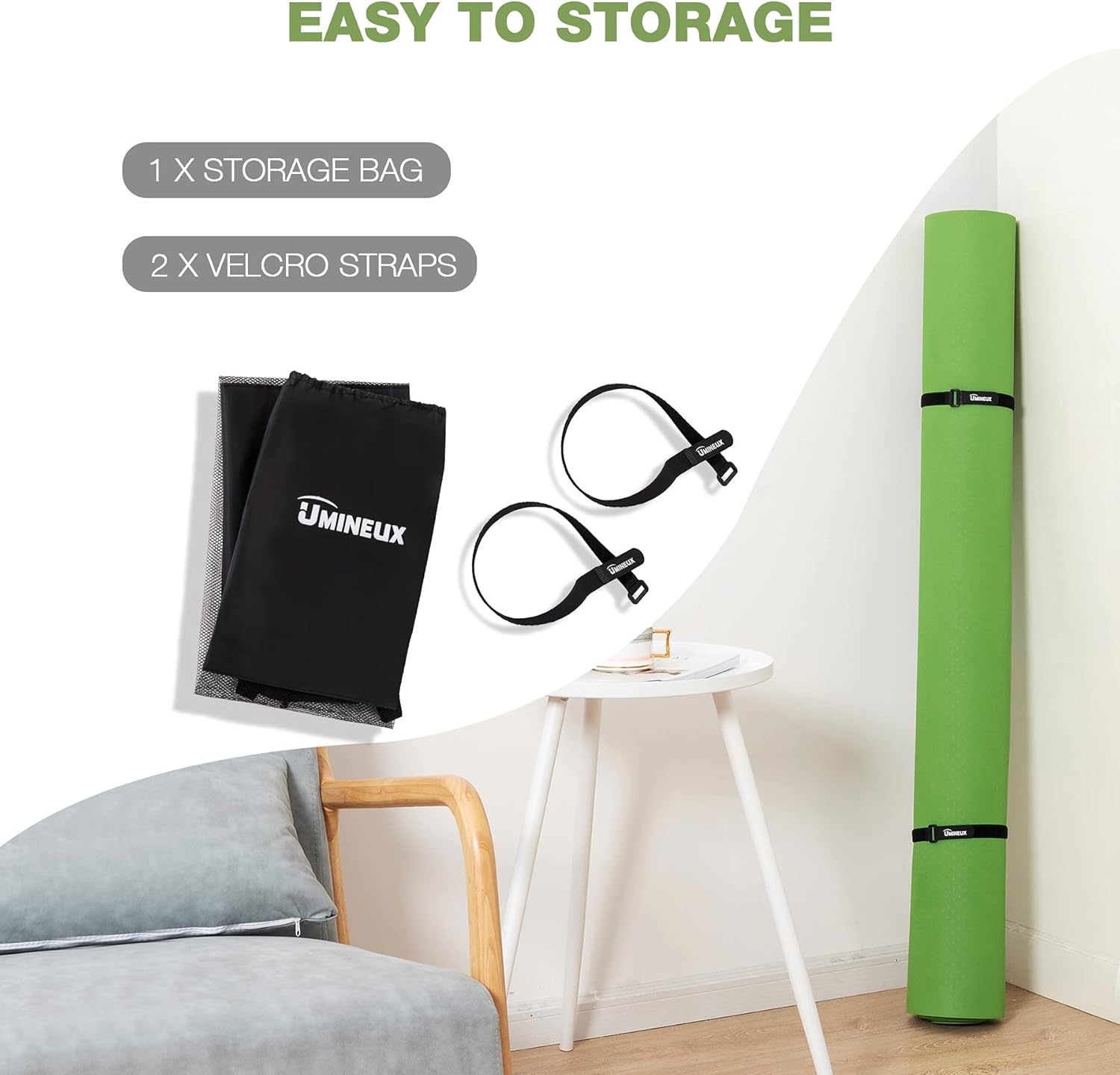 - EASY TO STORAGE - This spacious yoga mat can be placed in any corner of your room with the included 2 Velcro Straps and a Storage Bag. (If your mat damaged or accessories missing, please contact us immediately, we will give you a satisfactory answer)