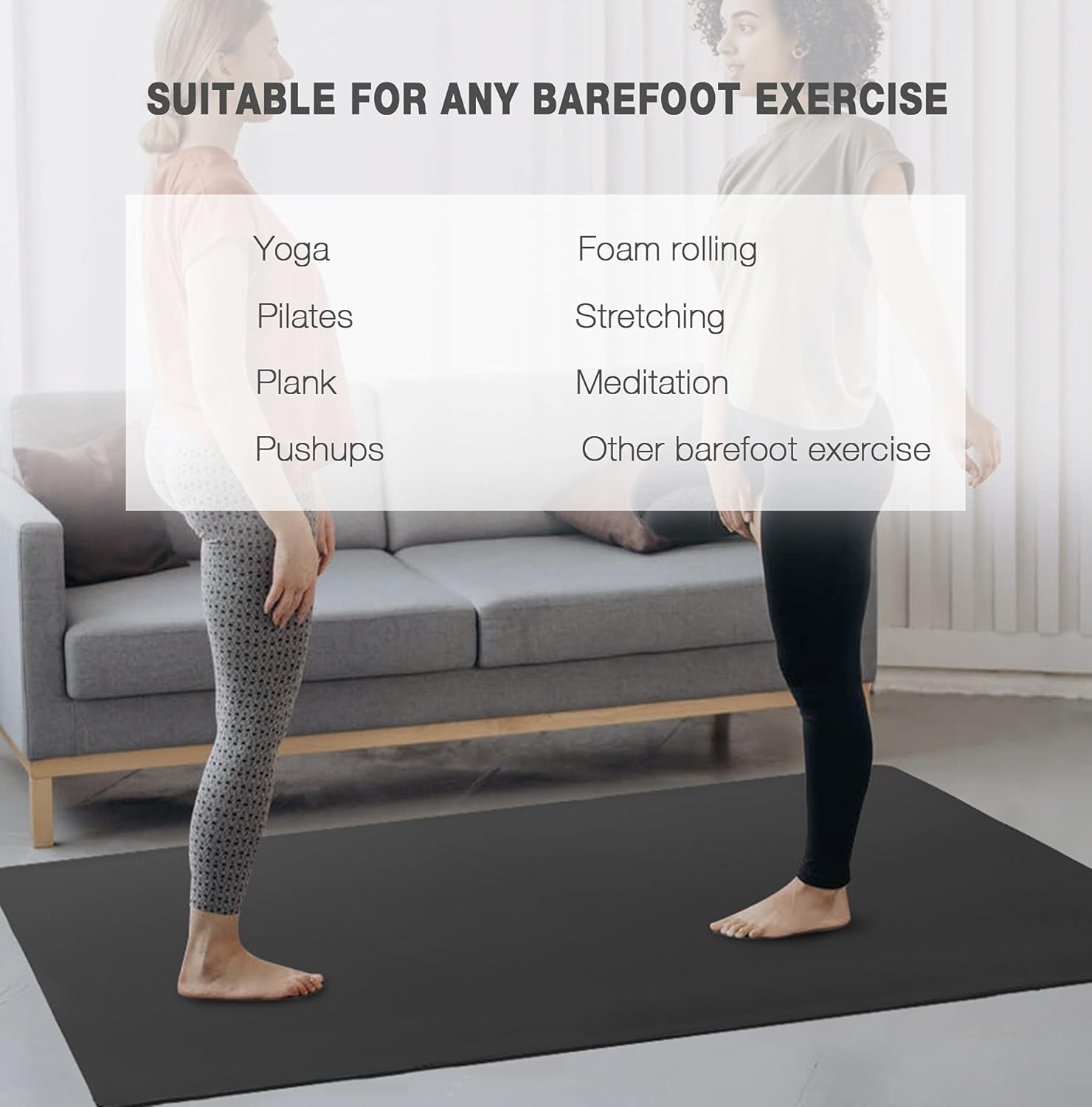 - DIMENSIONS: 6'x4'x6mm. This big yoga mat is double the standard-size, which is large enough for you to change directions without falling off the mat. Transforming your space into a perfect workout area.