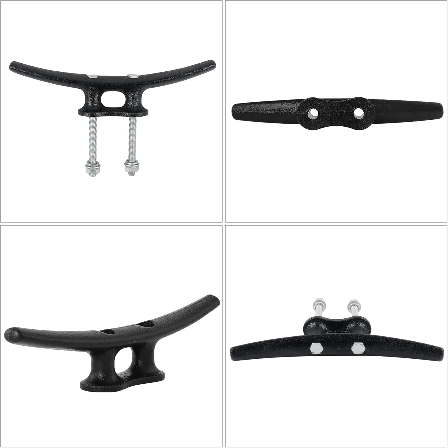 - 【Sturdy & Strong Materia】These dock cleats 8 inch are iron surface electrophoretic coating black and offer excellent protection against rust and corrosion resistant. the dock cleats for boats can stand up to a variety of weather; boat cleats metal are known for their strength, they are designed to withstand the rigors of marine environments, including exposure to saltwater, UV rays, and physical stress from ropes and lines. It can be quickly applied to variety of ropes and docks