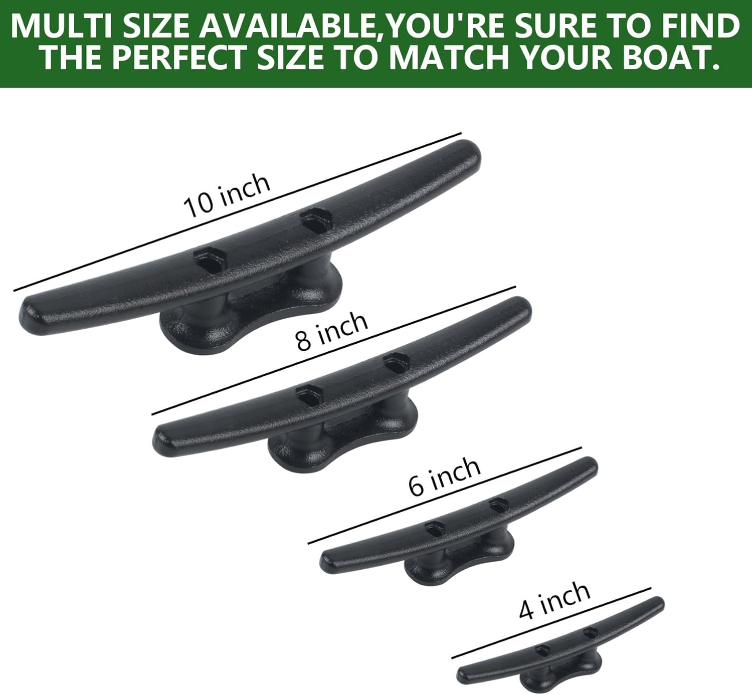 - 【Wide Footprint】Our boat dock cleats black feature a wide 1.2 inch bottom footprint, providing additional strength and stability. This wide footprint makes them perfect as cleat hooks for boat docks, decks, and piers, allowing for secure tying up of boats, kayaks, and jet skis. With this strong and reliable design, you can have peace of mind knowing that your watercraft will be safely secured