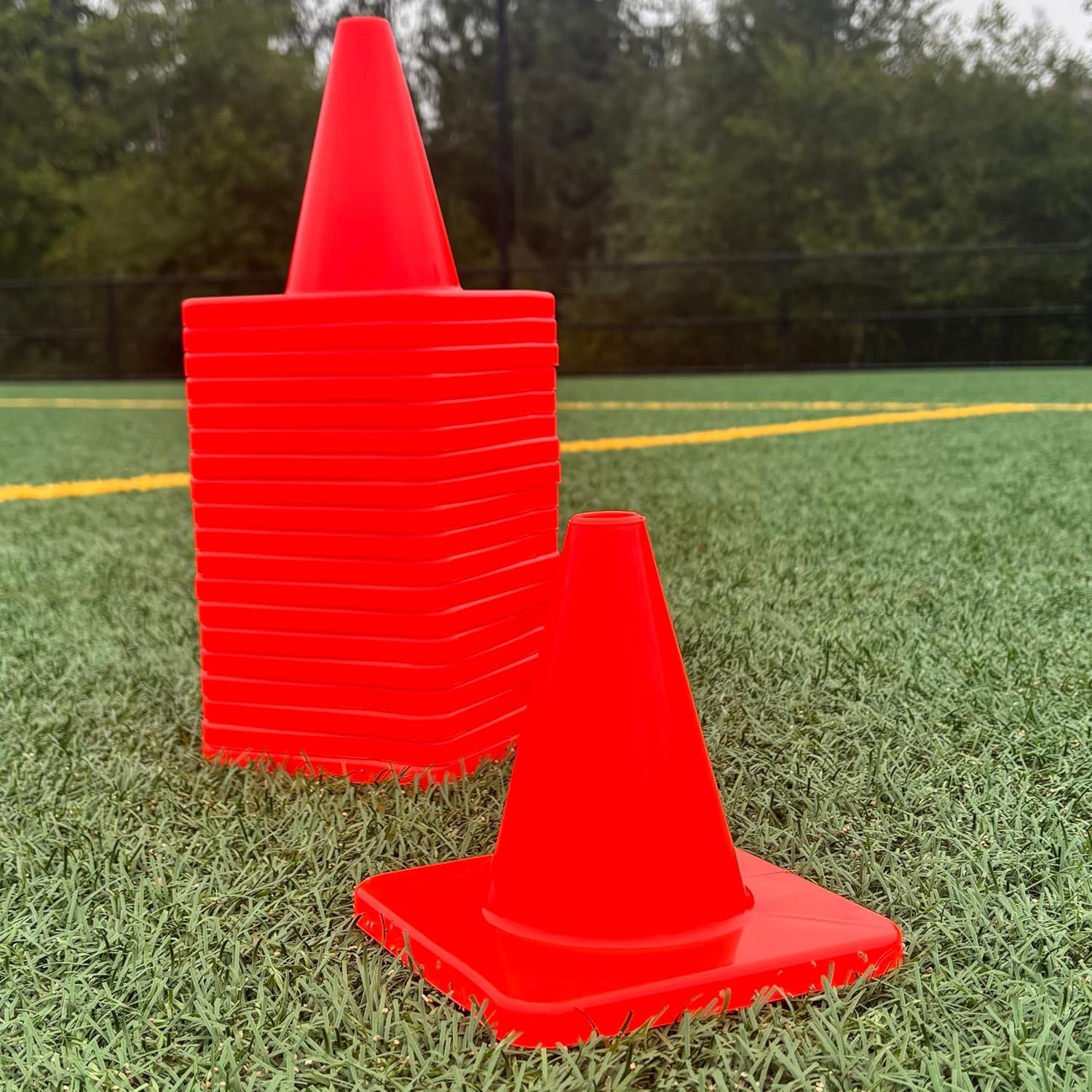 - Hassle-Free Agility Training: Our 6β cones boost a 6.0" square base and a 0.70" thick base height. They work great as sports cones for drills, motorcycle training cones, and more. Our outdoor cones are more stable and less likely to be knocked over during dribbling drills. Now, coaches don't have to constantly fix their field markers for a more productive and hassle-free practice in all weather conditions.